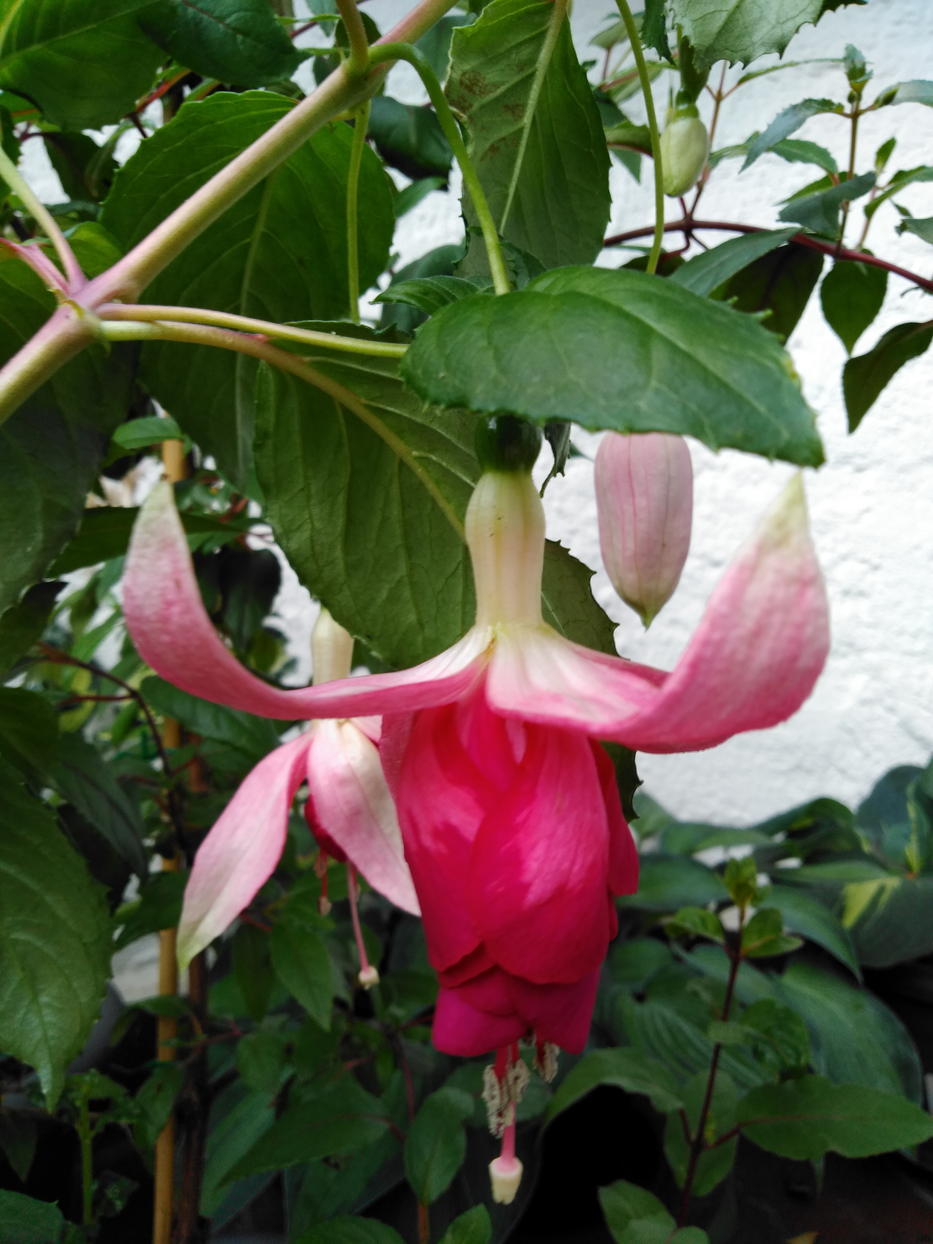 Hier noch eine Fuchsie die ich gerne mag. Sarong (Kennett Charles 1963) ist eine halbhänge Fuchsie mit schöner Farbkombination.