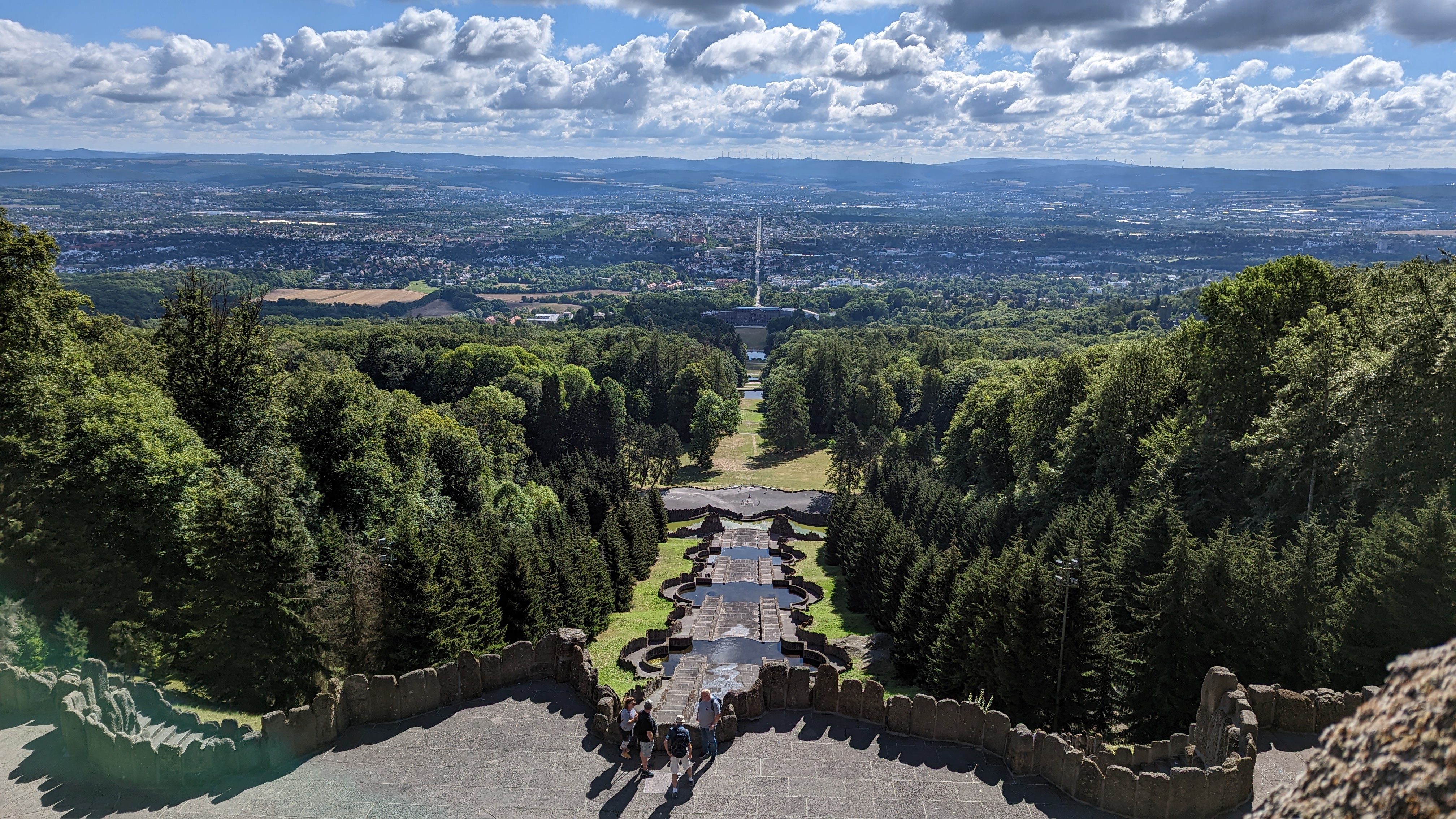 Von der Superplattform zu Füßen des riesigen Denkmals kann man bis in die Stadt sehen und die Wilhelmshöher Allee hinunterschauen! Einfach ein phantastischer Blick!