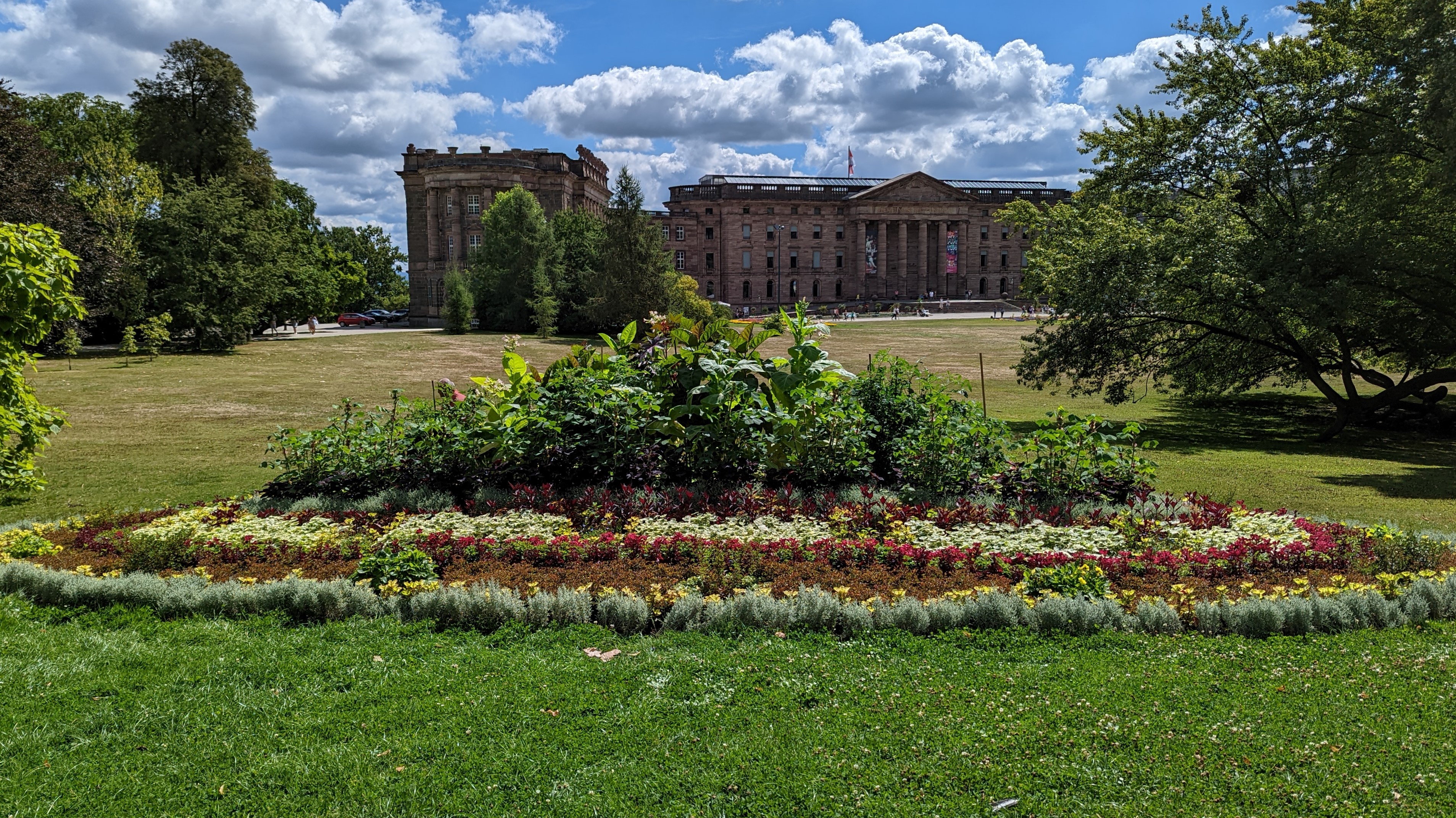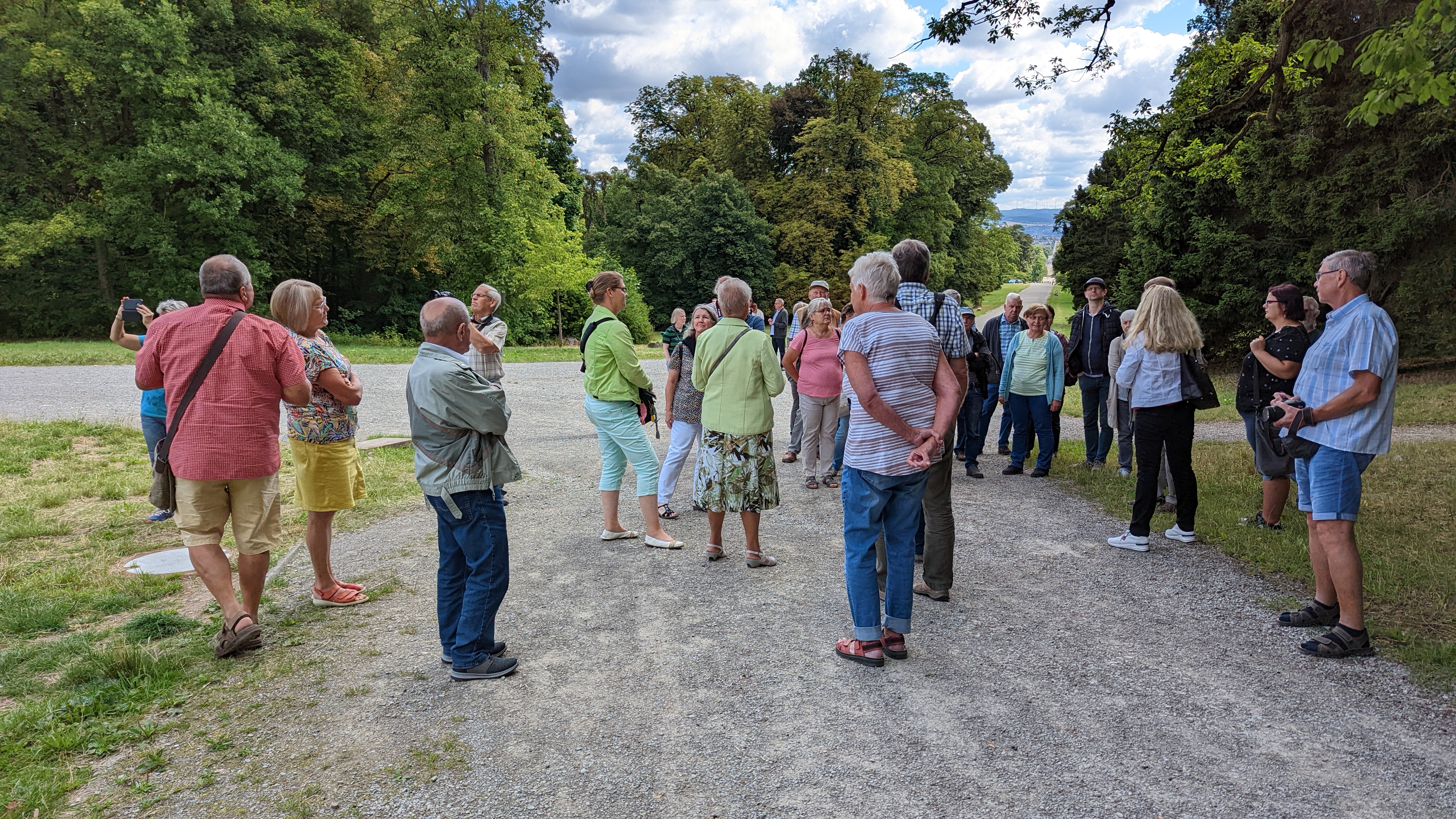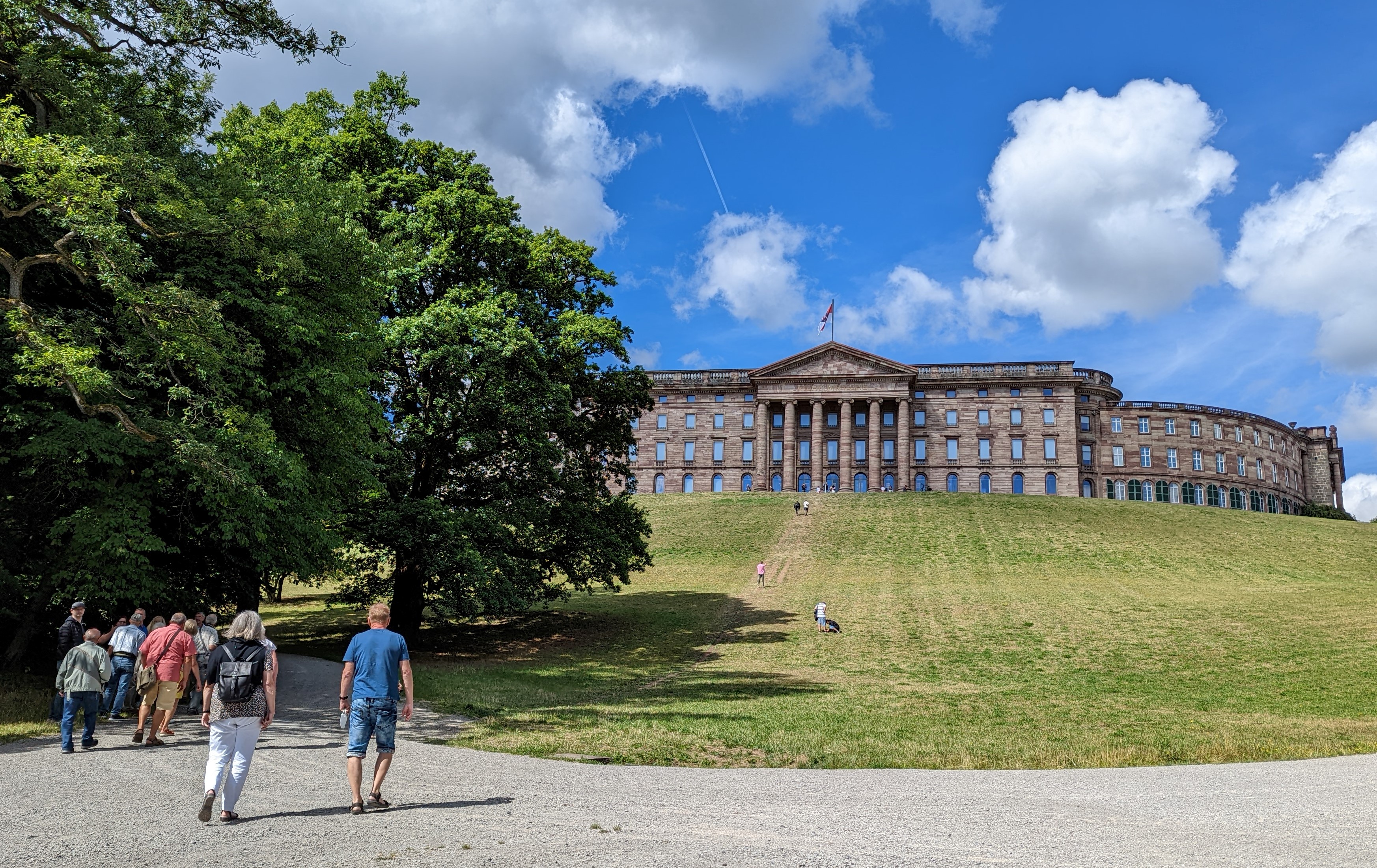 Wir sahen das Schloss Wilhelmshöhe schon, aber wir sind nicht die Wiese hoch gegangen, sondern brav auf dem Weg geblieben. Zuerst gab es aber noch ein paar Erzählungen über den Park, die tollen Rosen und viel mehr!