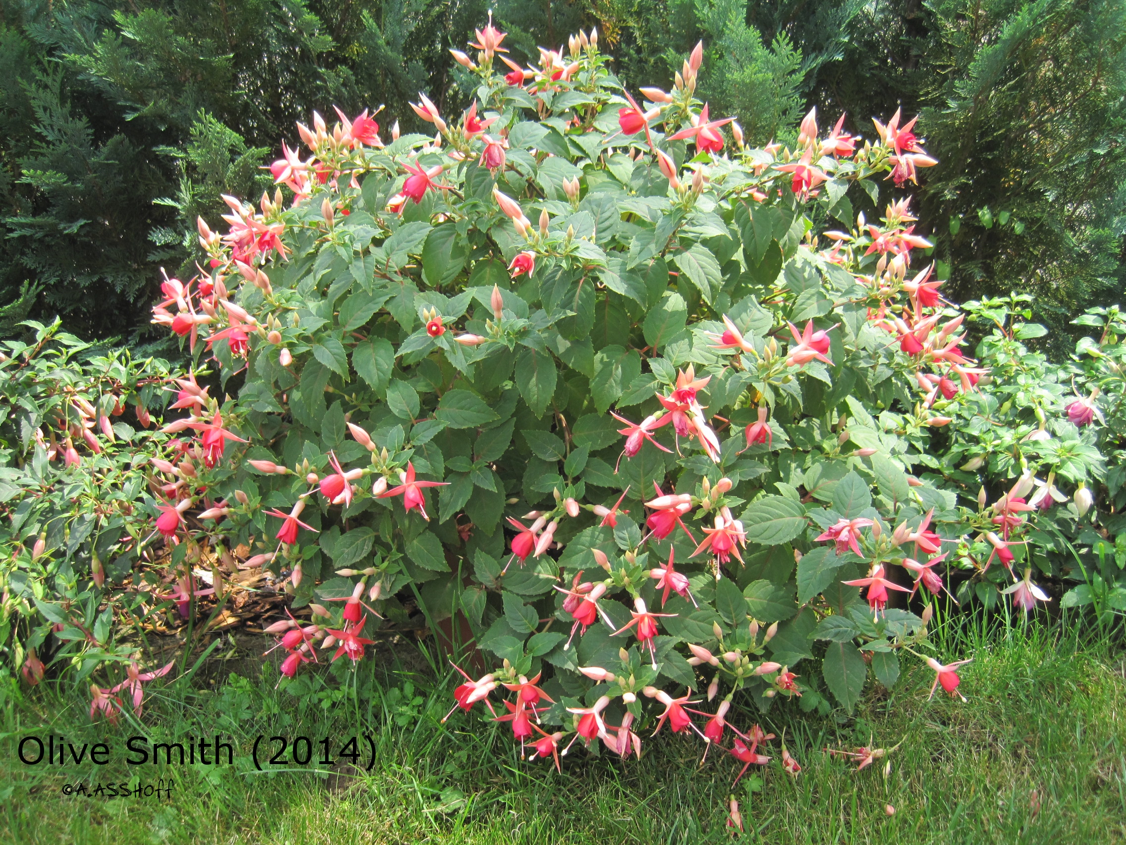 'Olive Smith' gehörte zu den ersten Fuchsien die ich damals bekam und genau diese eine Pflanze hab ich immernoch. Sie bildet schöne kugelige Büsche, ohne dass man entspitzen muss, sie blüht sehr reich ohne wirkliche Blühpause. Man sollte sie allerdings gut ausputzen, da sie sehr zur Beerenbildung neigt bzw die Fruchtknoten nicht abwirft. Wirklich ausreifen wollen die Beeren aber auch nicht, sodass sie eher eintrocknen. Das hemmt jedenfalls die weitere Blütenbildung und sieht irgendwann unschön aus.