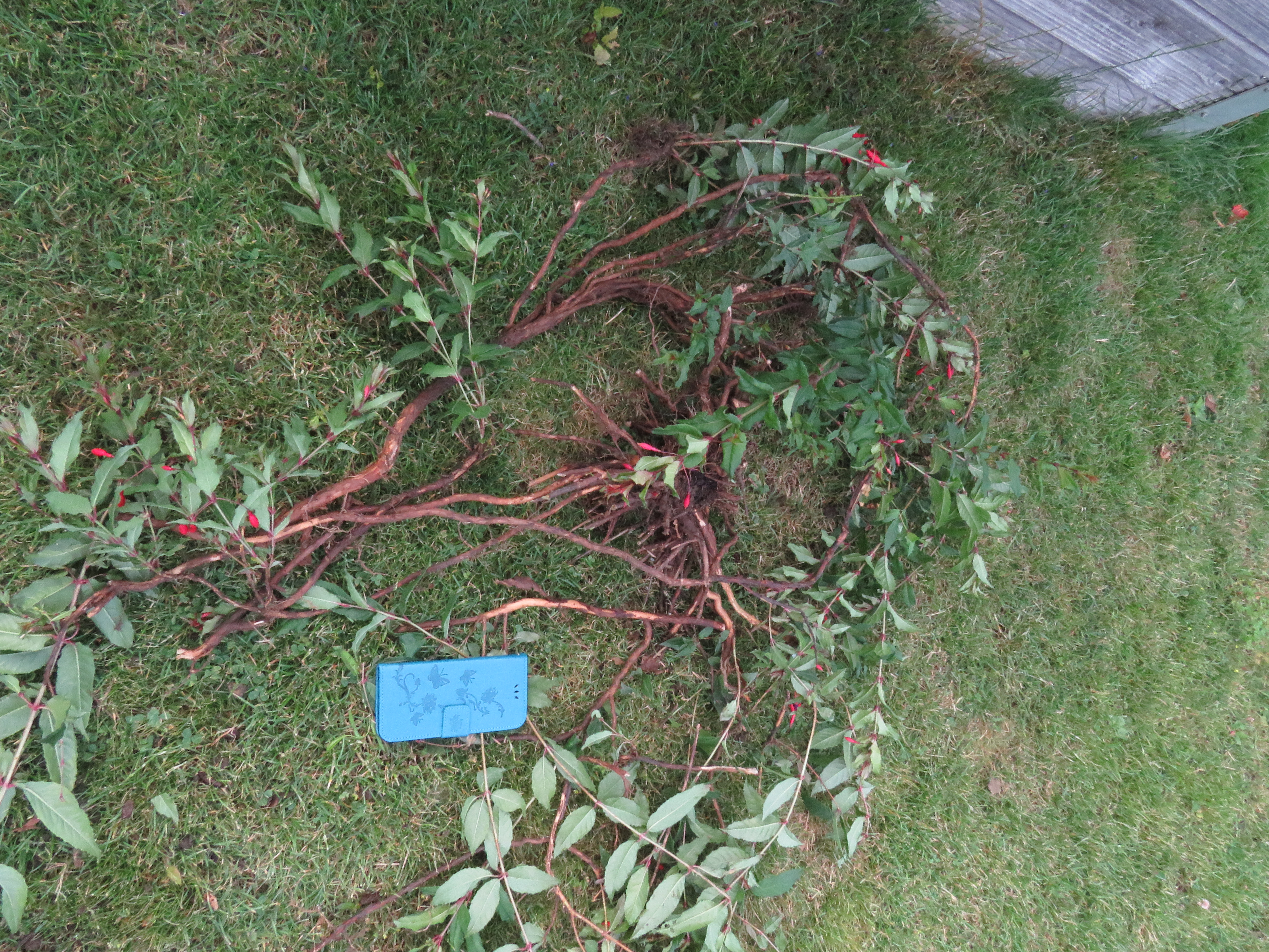 Jetzt habe ich sie einfach ausgegraben und entsorgt! Die unterirdischen Wurzeln waren ca. 1,50 m lang und zwei bis drei cm dick, sie wucherte mein Beet zu, deshalb musste sie weg! Und ich hätte auch ein schlechtes Gewissen, wenn ich sie jemandem gegeben hätte! Ich habe mal mein Handy daneben gelegt, damit man eine ungefähre Vorstellung von den Wurzeln hat!