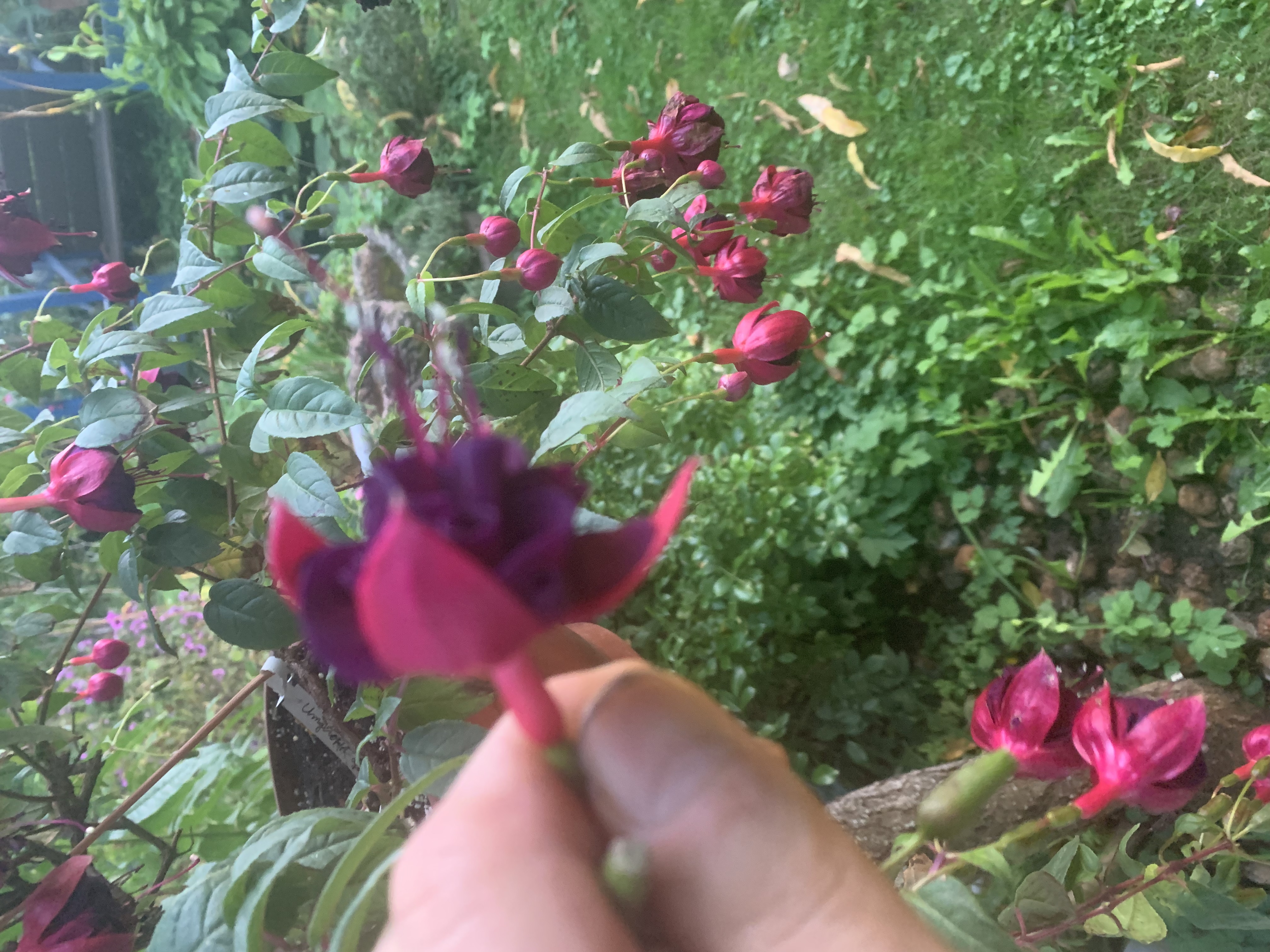Nein die Blüte der oberen(stehenden)Fuchsie ist waagerecht!