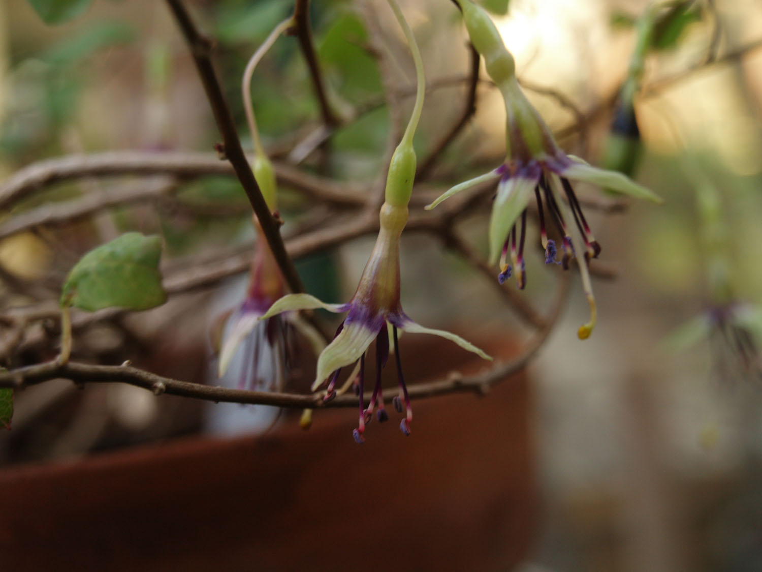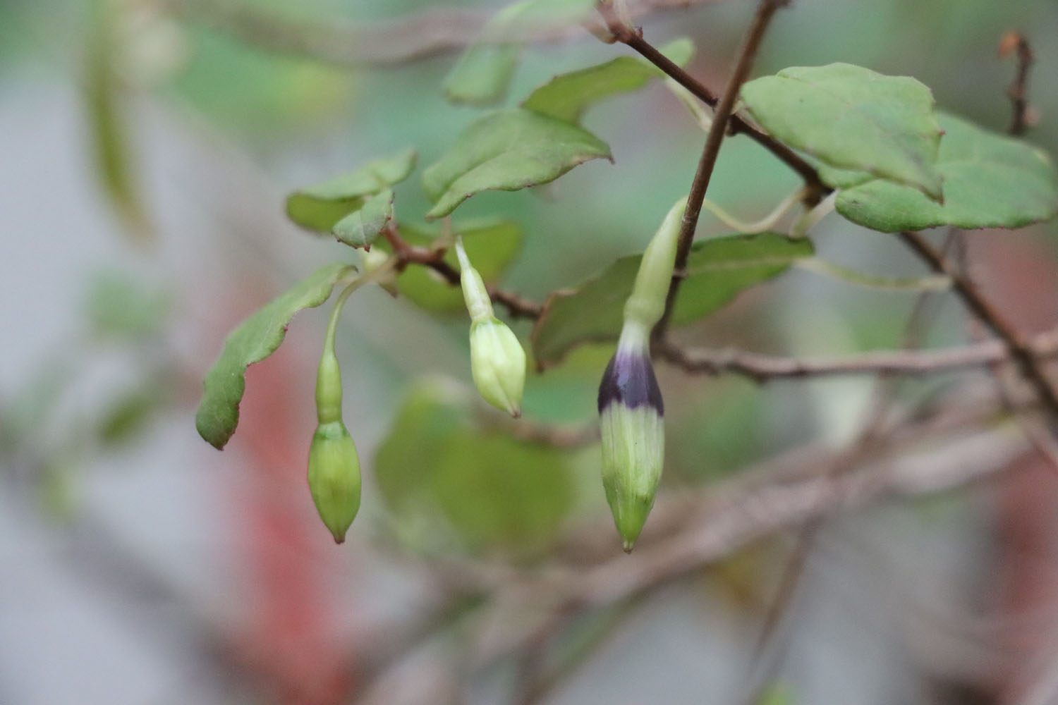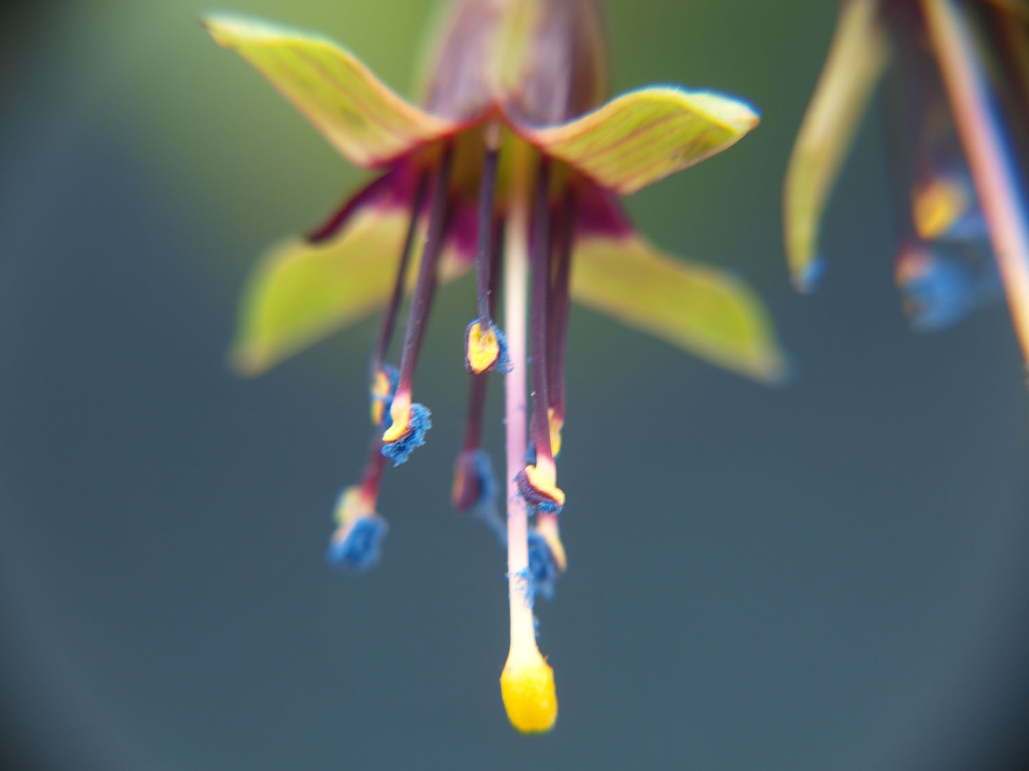 Die Blüten tragen, wie alle anderen neuseeländischen Fuchsien, blaue Pollen.