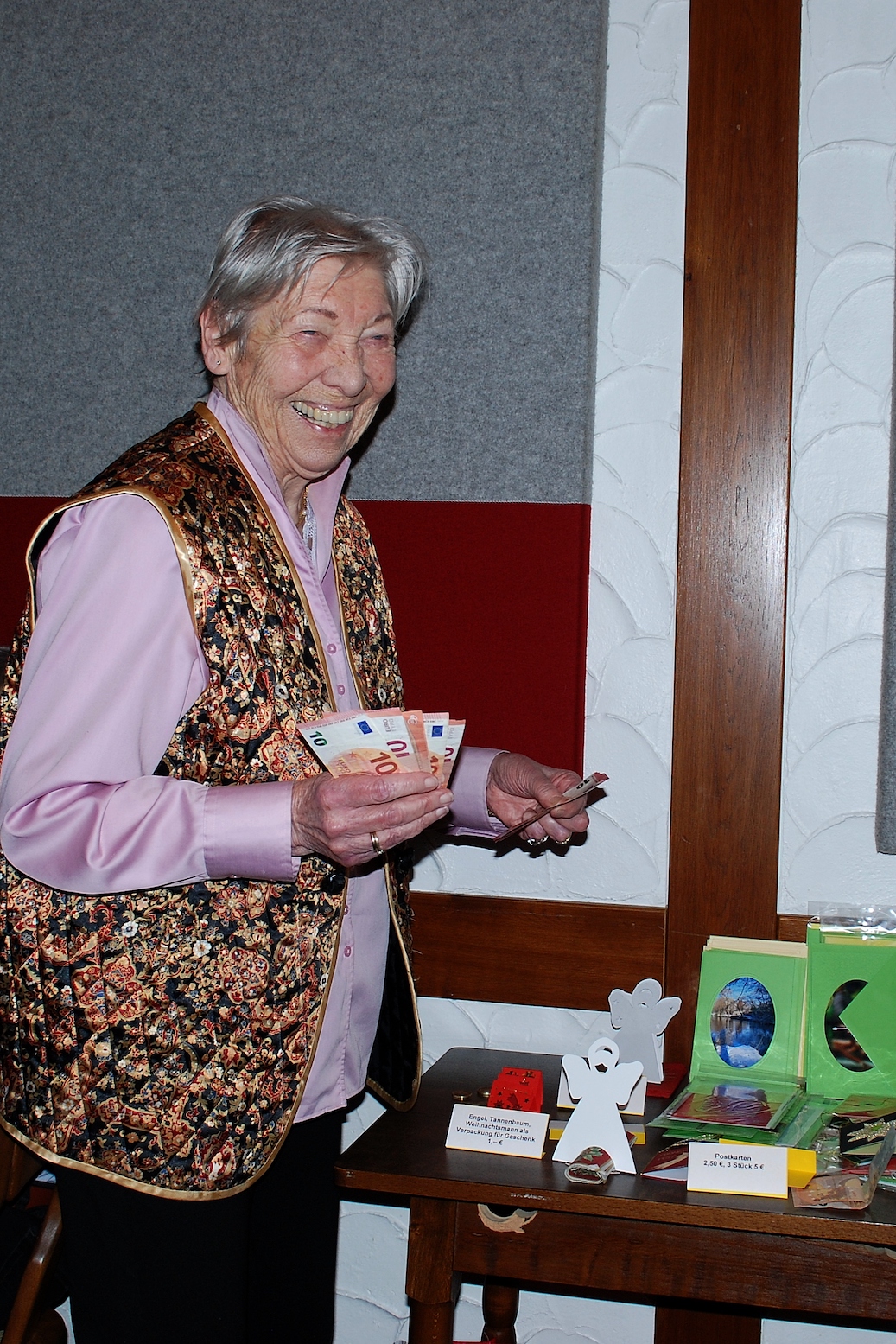 Eva, Rosie und ich hatten auch wieder gebastelt, Eva übernahm den Verkauf der Bastelarbeiten und die Auktion meiner Mosaik Bilder. Ich freue mich, dass dadurch einiges an Geld in die Kasse kam.