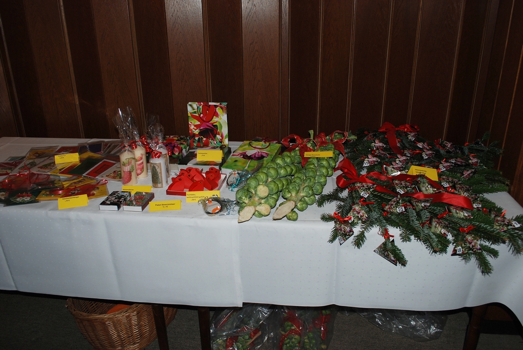 Verschiedene Mitglieder hatten kleine Tisch-Dekorationen für jeden gebastelt und die Bastelgruppe um Eva Paechnatz hat wieder viele Geschenke für den Verkauf angeboten. So kommt immer mal wieder Geld in unsere kleine Kasse (dieses Mal hatte es für ein Gläschen Sekt gereicht). Es waren sehr schöne und harmonische Stunden!