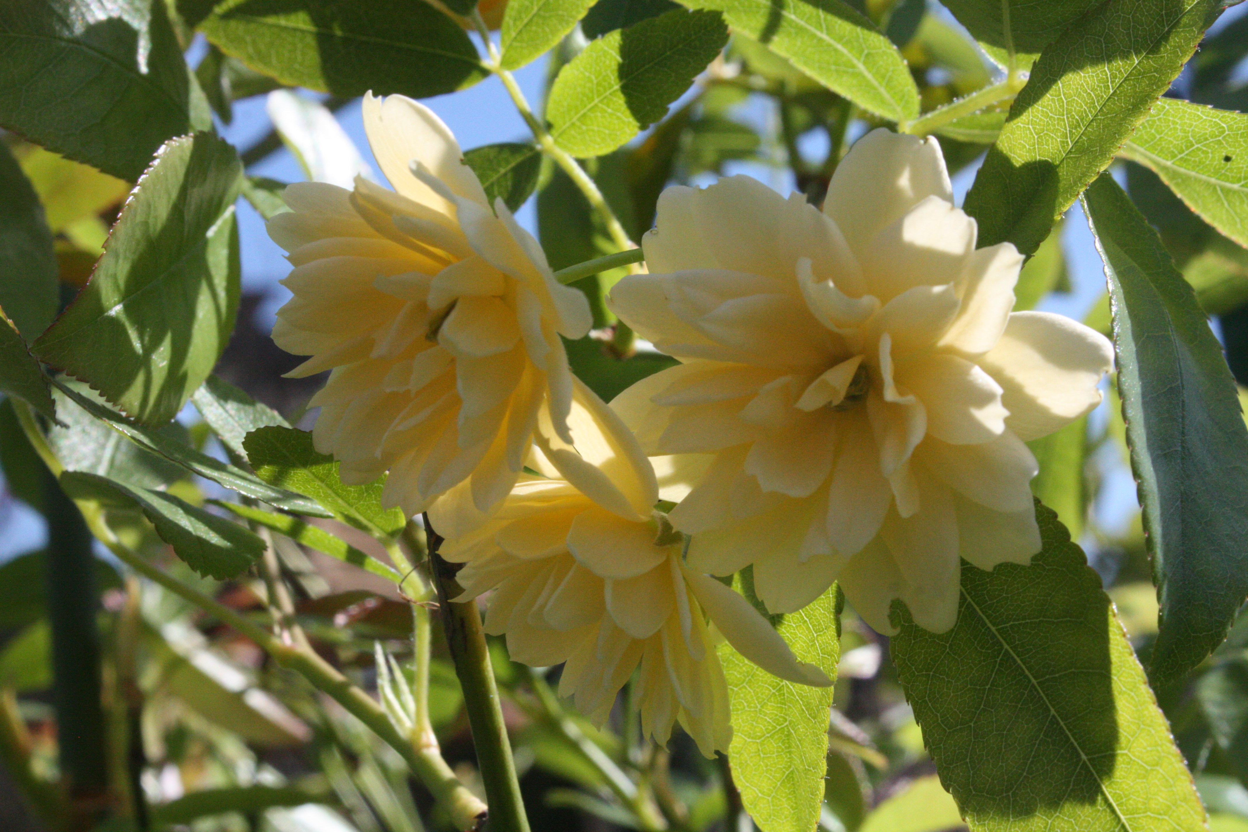 Vor 6 Jahren waren wir über Ostern in Spanien u.a. auch in der Alhambra. Dort blühte eine Rose - hellgelb, dornenlos, übervoll, am Eingang. Nach einigen Nachforschungen erfuhr ich den Namen - Meraner Rose. Über die Gärtnerei Horstmann bekam ich dann einen Steckling - 1 Trieb, kaum Wurzel, ich wollte sie schon wieder zurück schicken, war mir aber dann doch zu aufwendig. Dann habe ich sie gehätschelt und seit 2 Jahren blüht sie, noch nicht so üppig aber.... wunderschön.