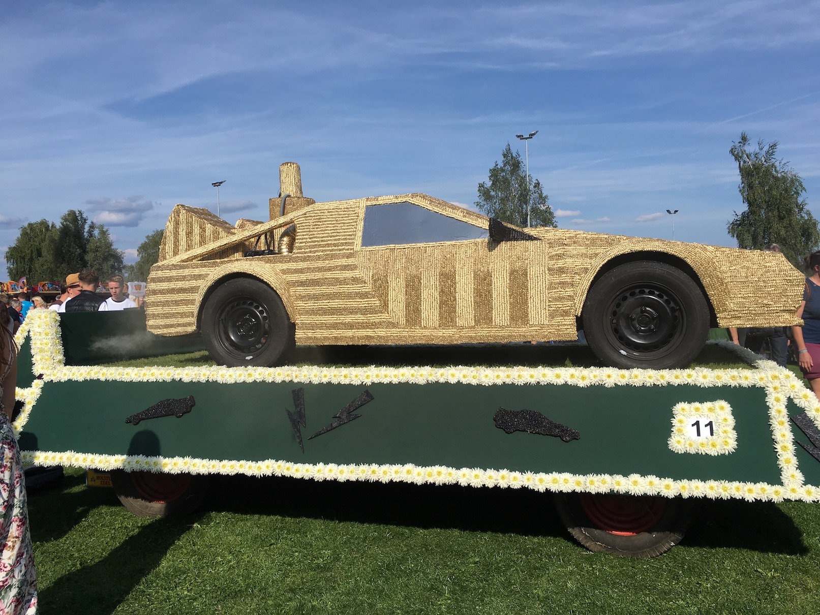 Schön, dass euch die Bilder gefallen haben. Als Nachtrag zur Unterkonstruktion: Die Themen sind jedes Jahr andere. Das Breanstorming der einzelnen Gruppen ist schon wieder in Gange. Erst sagen alle, was sie sich vorstellen könnten. Dann wird überlegt, was ist machbar, dann werden die Handwerker gesucht. Wichtig sind Schreiner oder Dachdecker - alle die mit Holz umgehen können. Die Feinarbeiten wie Ähren (meistens Weizen) aufkleben und die Details sind meistens die Arbeiten der Mädels/Frauen - die haben mehr Geduld. Das Meiste entwickelt sich erst beim bauen. Manche Idee wird verworfen, weil sie sich nicht realisieren lässt. Wir sprachen mit einem Feuerwehrmann, der war für das Fachwerk im Schneckenhaus. Aufzeichnen wollte er nicht - nachbauen, die Leisten vorbereiten, aufkleben - das war dann sein Ding. Die Schnecke machte tatsächlich 1. Platz. Den 2. dann ein Gasthof aus dem Dorf (wurde gerade abgerissen). Das Auto (es qualmte übrigens) machte den vorletzten Platz.