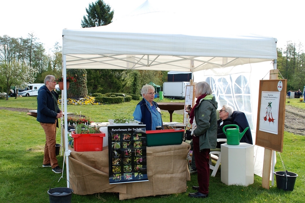 Für unser Infozelt hatten wir einige WH Fuchsien mitgebracht, sie hatten auch schon kleine Öhrchen. Wir führten mit vielen netten Besuchern - viele nette Gespräche über unsere WH Fuchsien. Etliche Pflanzen haben neue Pflegeeltern bekommen.