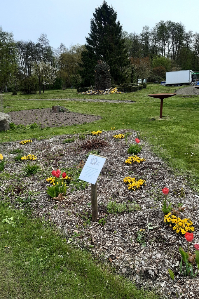 Und jeder der WH Fuchsien hat, weiß wie weit die Pflanzen z.Zt.aus der Erde schauen. Unsere sind auch noch mit Schredder Material abgedeckt. Sie sind zu sehen, aber nicht auf die Ferne.