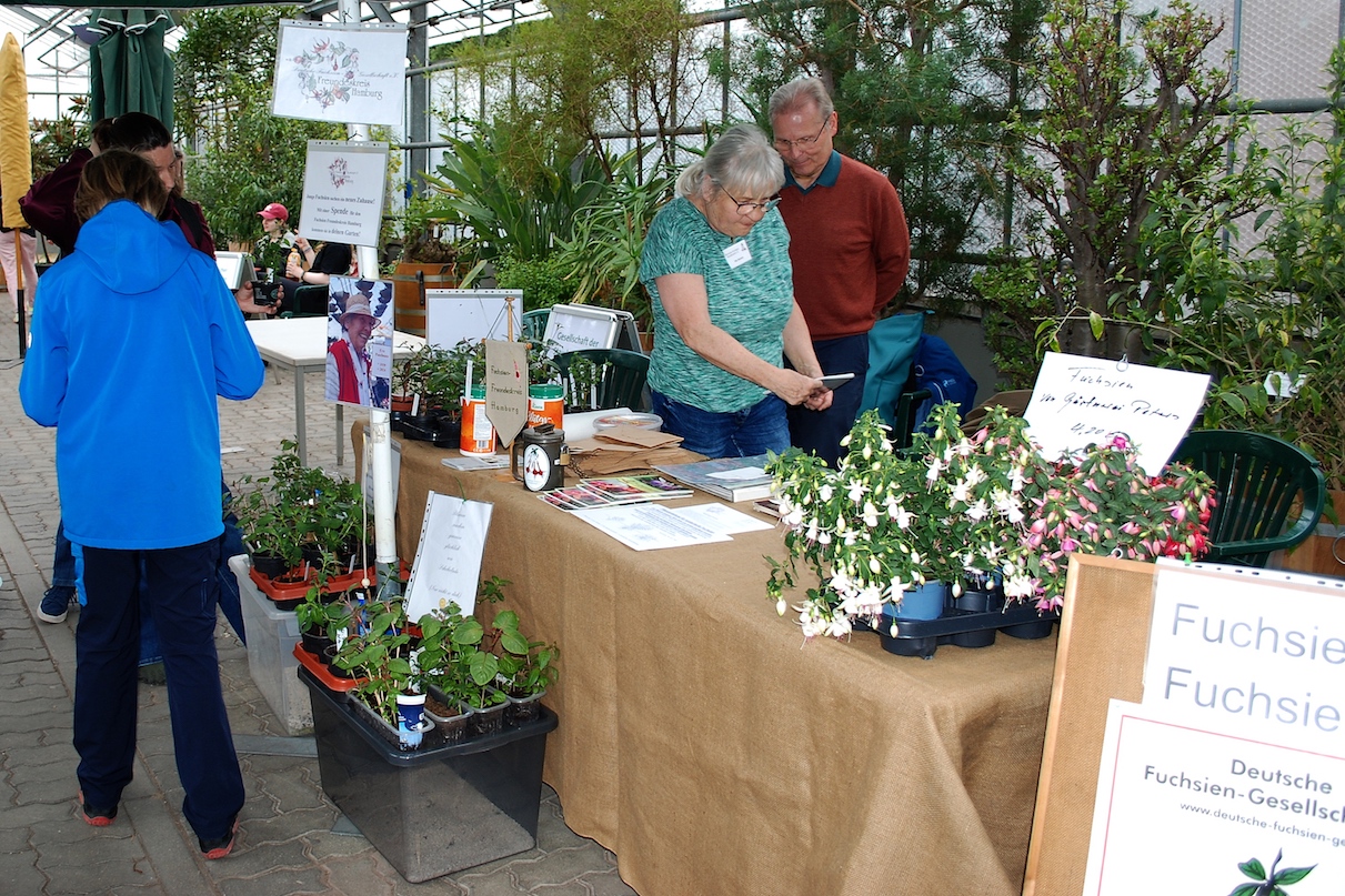 Im Vordergrund stehen ja wunderschön blühende Fuchsien, da konnten die Interessenten gleich sehen, was aus ihren erworbenen Pflänzchen mal werden kann. Eurer Einsatz ist schon bemerkenswert.