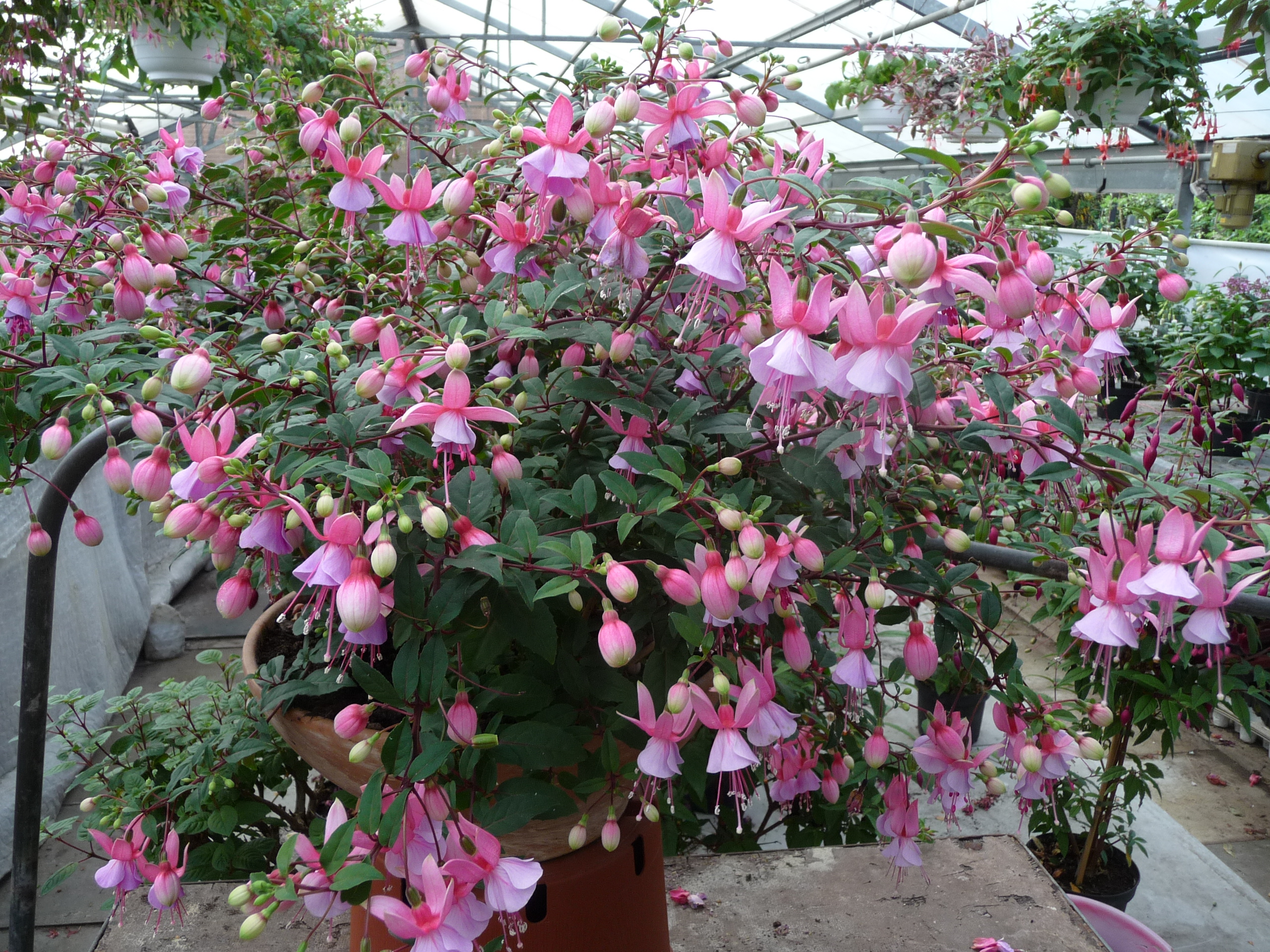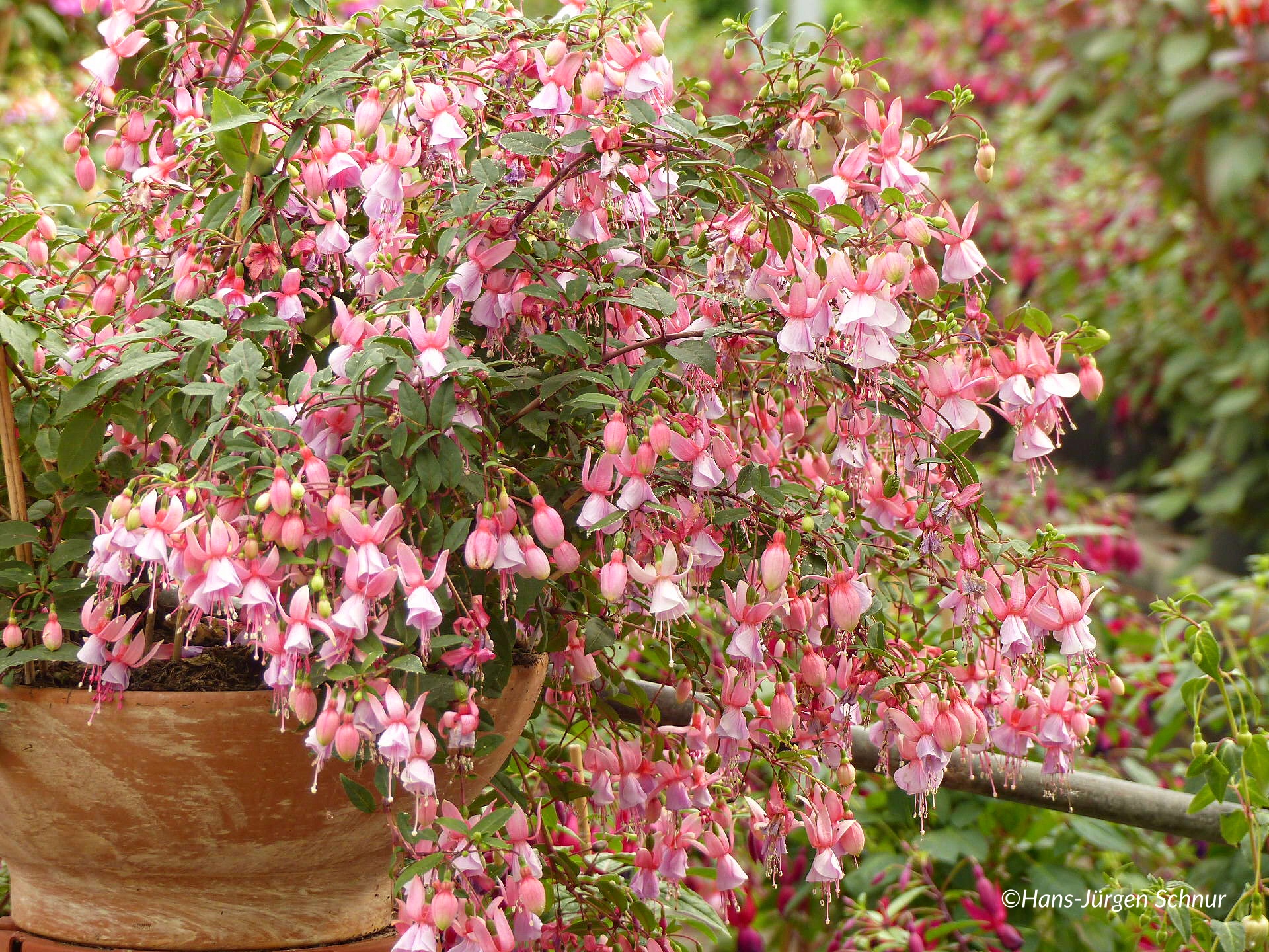 Es ist schon ertaunlich,wie weit und wieviele Blüten an den Fuchsien von Familie Saak sind.