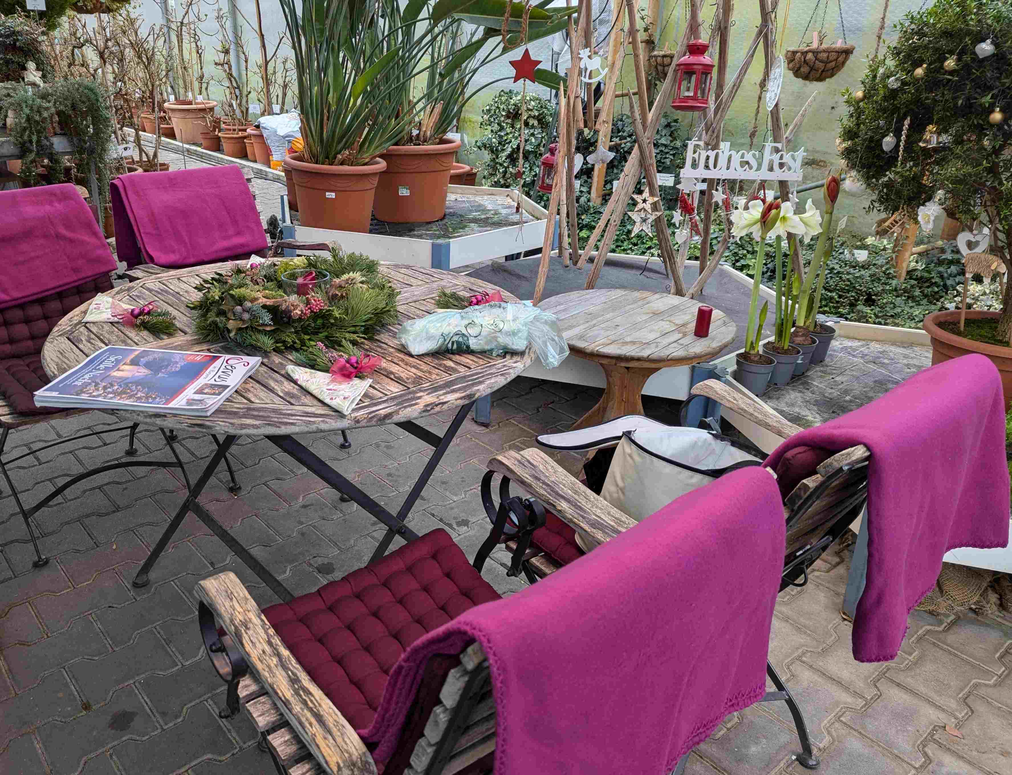 Im Gewächshaus ist im Eingangsbereich schon ein wenig Weihnachtlich geschmückt .