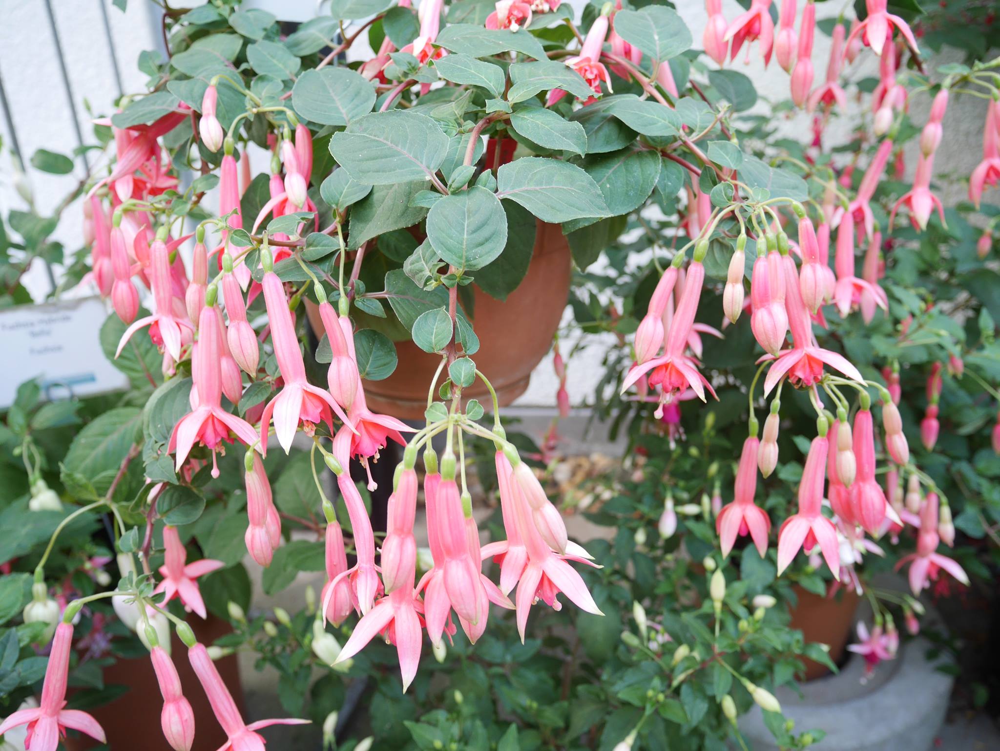 Die Ampelbepflanzung sieht er im Augenblick als Test an. Er möchte sehen wie die Fuchsien darin wachsen.