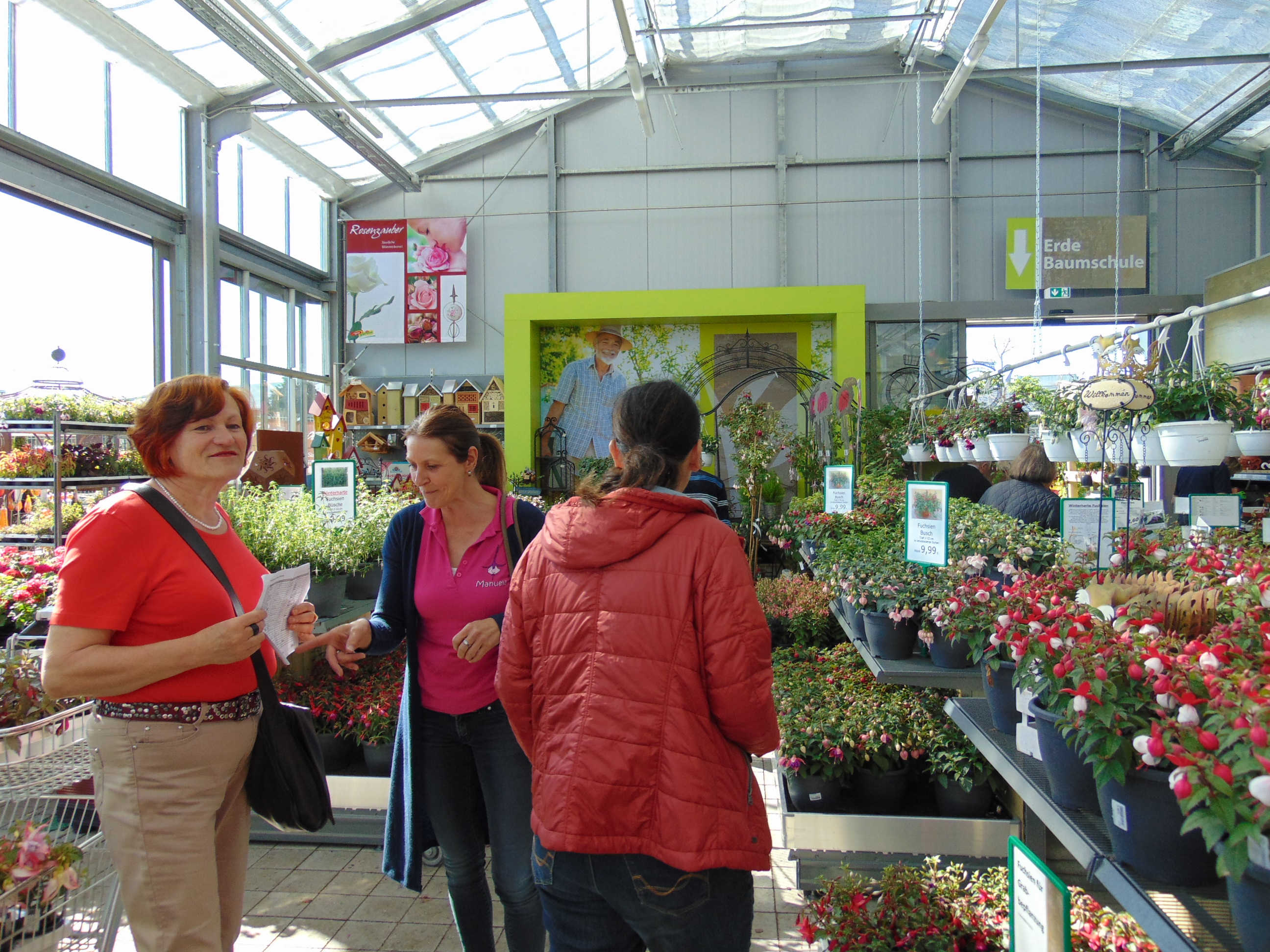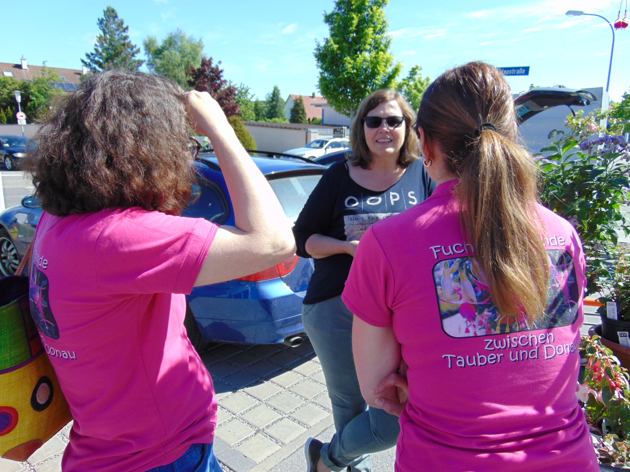 So und hier bin ich nun auch mal auf einem Bild mit drauf. Links ist Frau Gernegroß, die sich damals viel um den alten FK Wemding bemüht hat. Eine sehr nette neue Bekanntschaft, die wir weiter pflegen werden. Sie konnte uns sehr viel Interessantes rund um den Fuchsienmarkt erzählen und wir hörten ihr wirklich gern zu