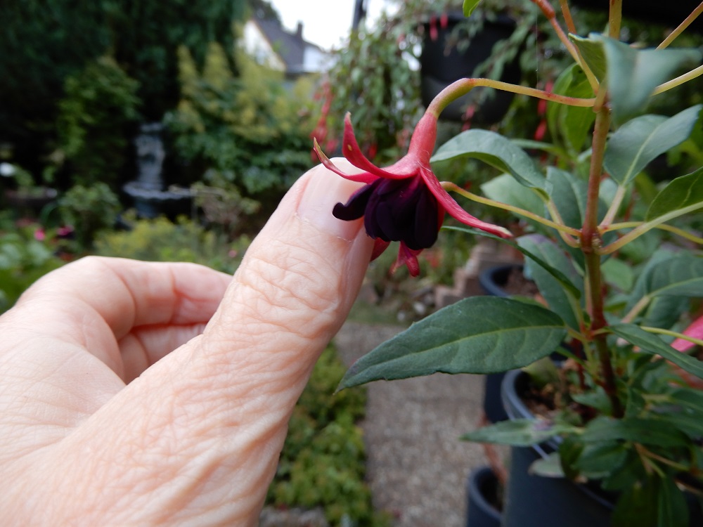 Dazu möchte ich  auch noch eine Vergleichsfuchsie nebendran legen um den Größenunterschied aufzuzeigen.