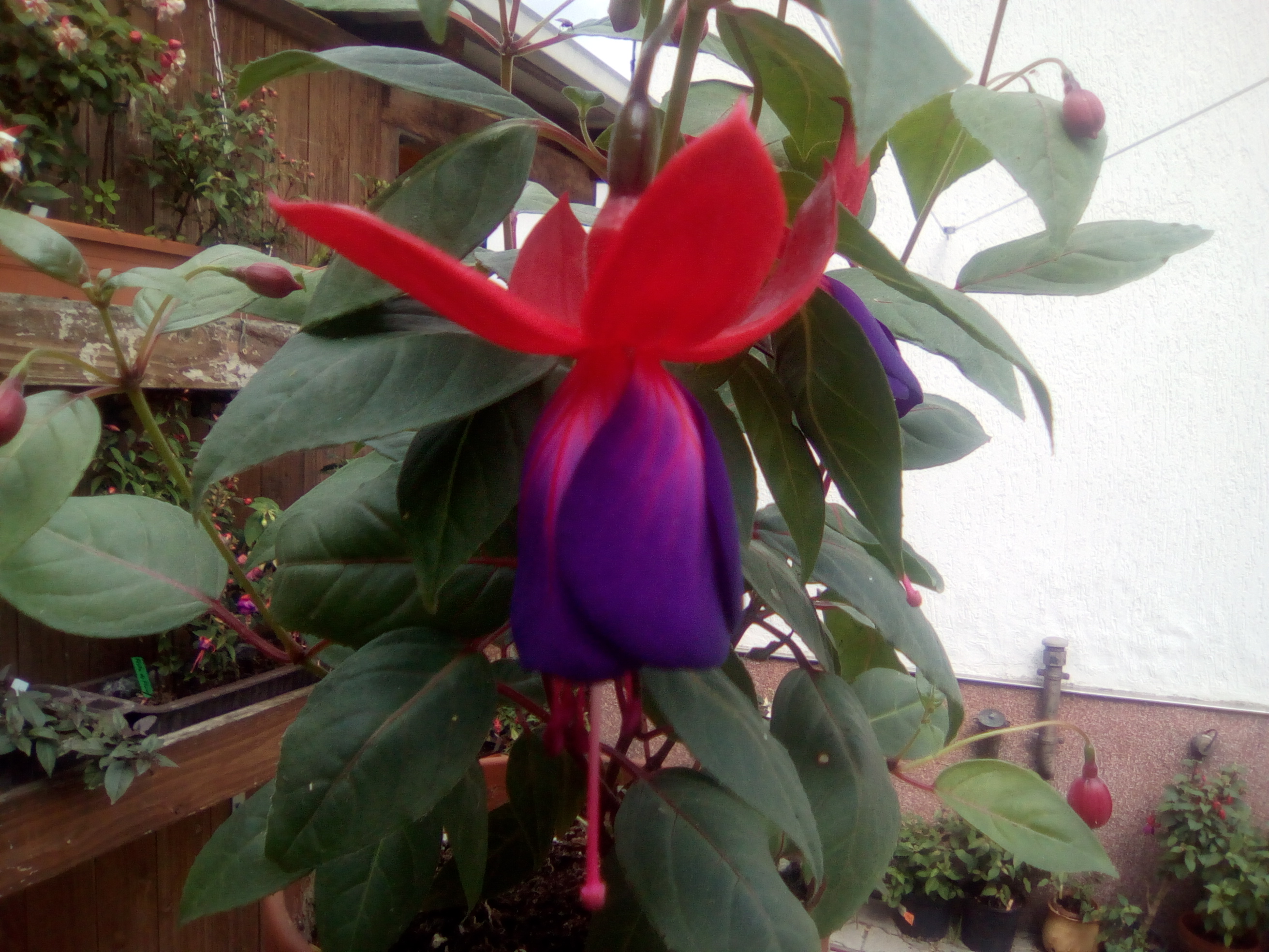 in dem alten Thread "Fuchsien aus dem vorletzten Jahrhundert" habe ich im September 2013 die 'Graf Witte', 1899, Züchter Lemoine, vorgestellt. Wenn ich mich richtig erinnere, habe ich sie irgendwann in der Gärtnerei Michiels gekauft. Sie ist insgesamt eher langsam gewachsen und war meiner Meinung nach nicht unbedingt "einzigartig" oder "unverwechselbar". Inzwischen habe ich sie nicht mehr; keine Ahnung, warum. Vielleicht hat sie einen Winter nicht überlebt, wobei ich sie nicht draußen überwintert habe.