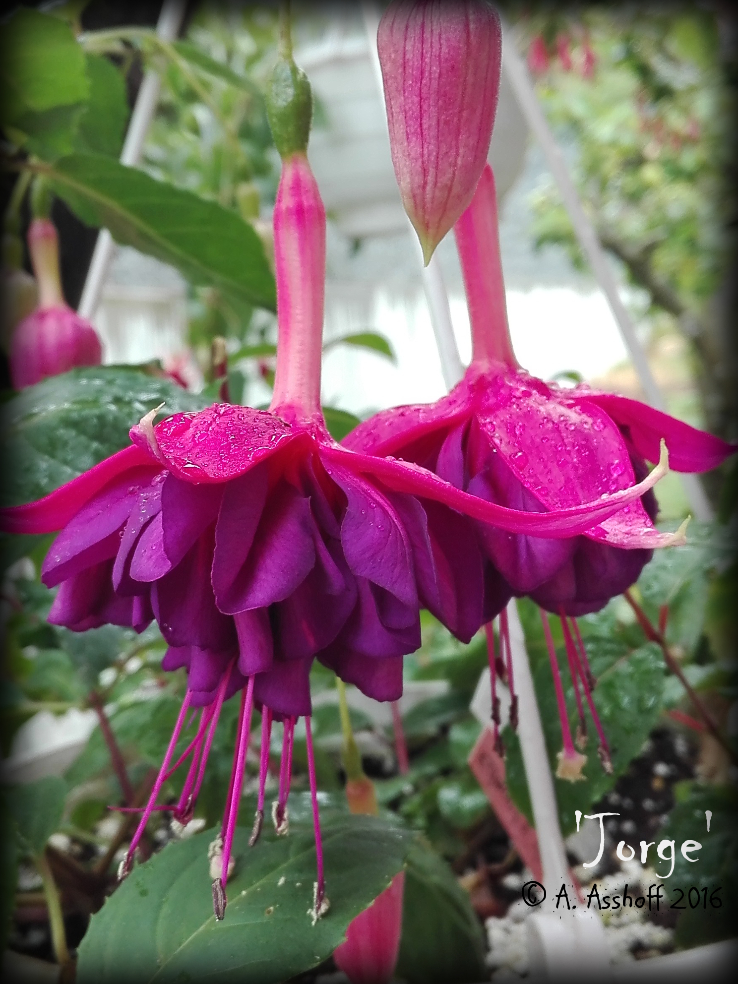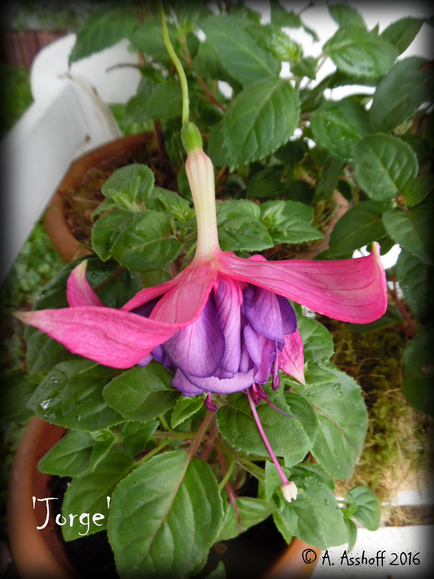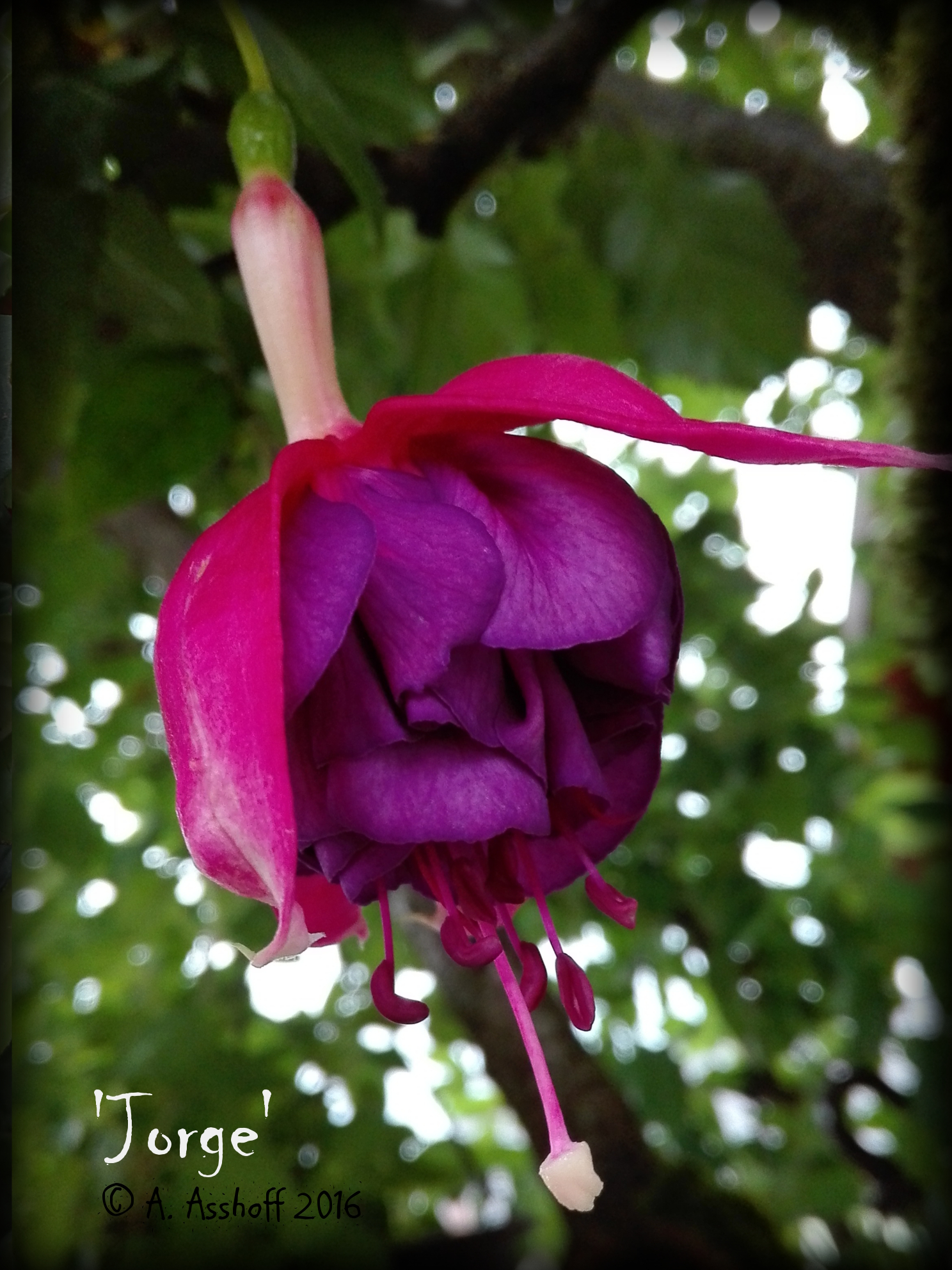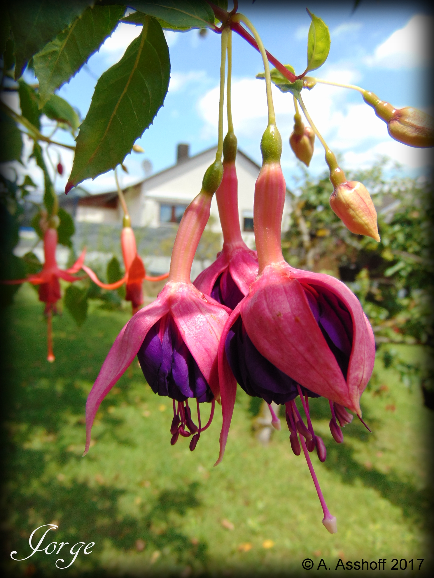Eine sehr hüsche ist die "Jorge", mir gefallen mittlerweile die Fuchsien mit langem Tubus besonders gut.