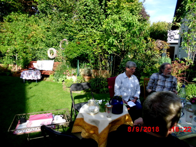 Leider war es ein noch kleiner Kreis welcher sich in Karins Garten bei Kaffee leckerem Kuchen getroffen hatte. Gesprächsthemen waren es zu Genüge also verging die Zeit wie im Flug.