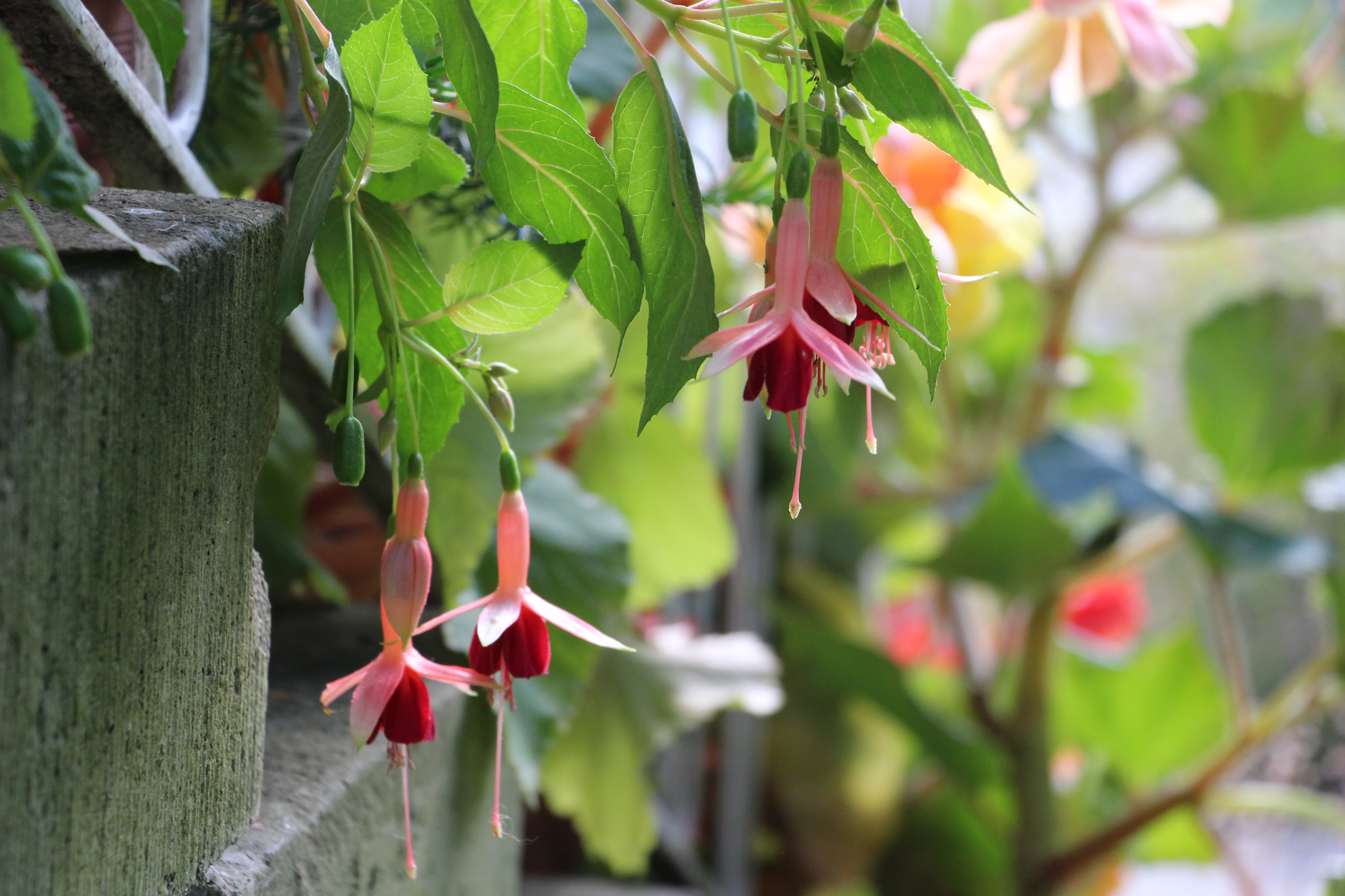 Sorry, dass ich mich erst jetzt zu Wort melde. Habe jetzt 3 Tage nach einem Foto gesucht. Die Fuchsie steht schon geschnitten im Winterquartier. Ist nicht das schönste Bild, aber man kann sie erkennen :)