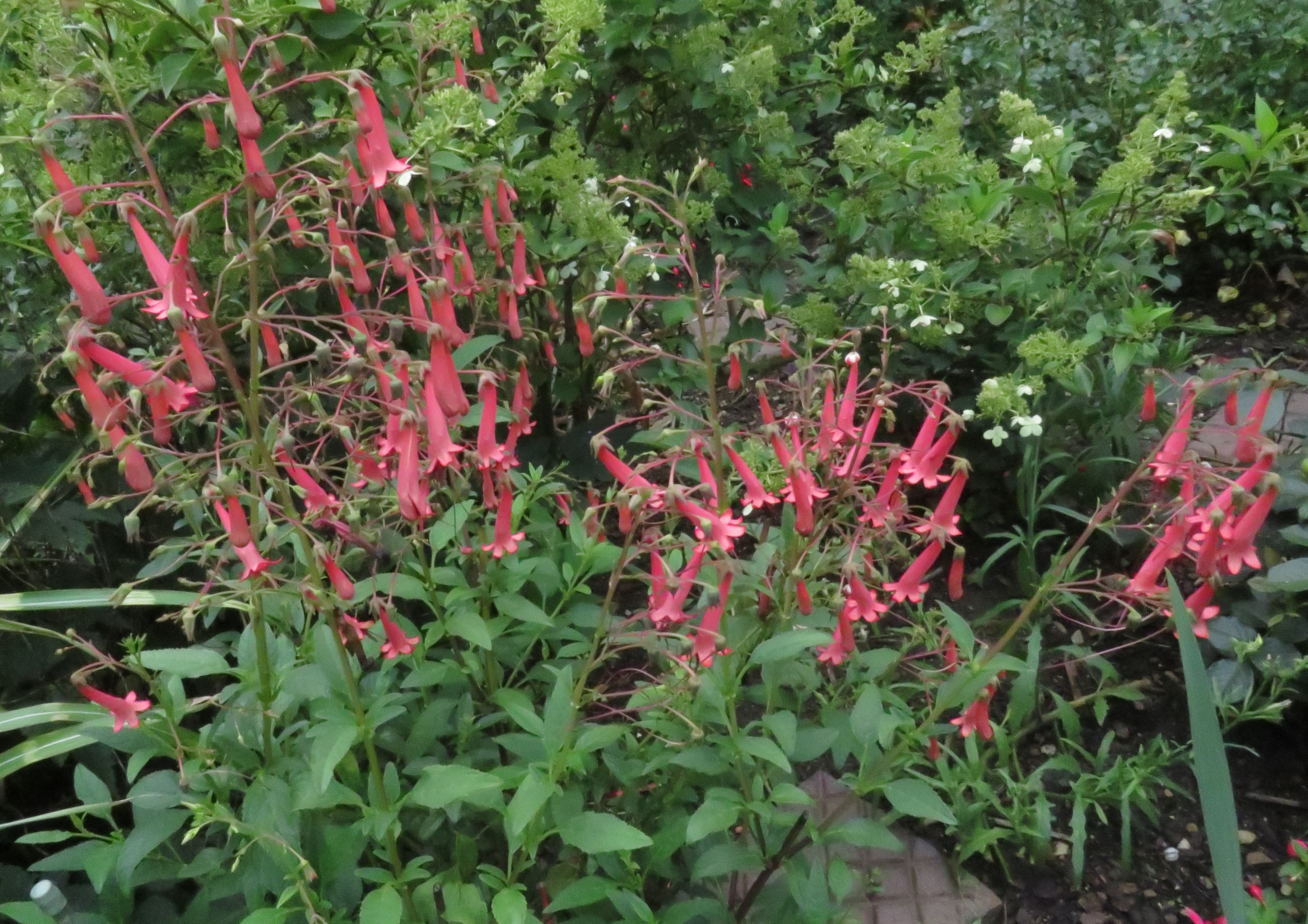 Frischte Triebe haben bislang nur die Kapfuchsien (die ja keine sind). An den ausgepflanzten Winterharten sehe ich noch nichts. Darüber bin ich ganz froh. Nachts gibt's immer wieder Frost.