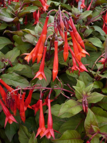 Kennt sie jemand von euch? Die Farbe ist von einem kräftigen orangerot. Sie hat eine gute Fernwirkung, was man nicht unbedingt bei den Fuchsien immer behaupten kann.