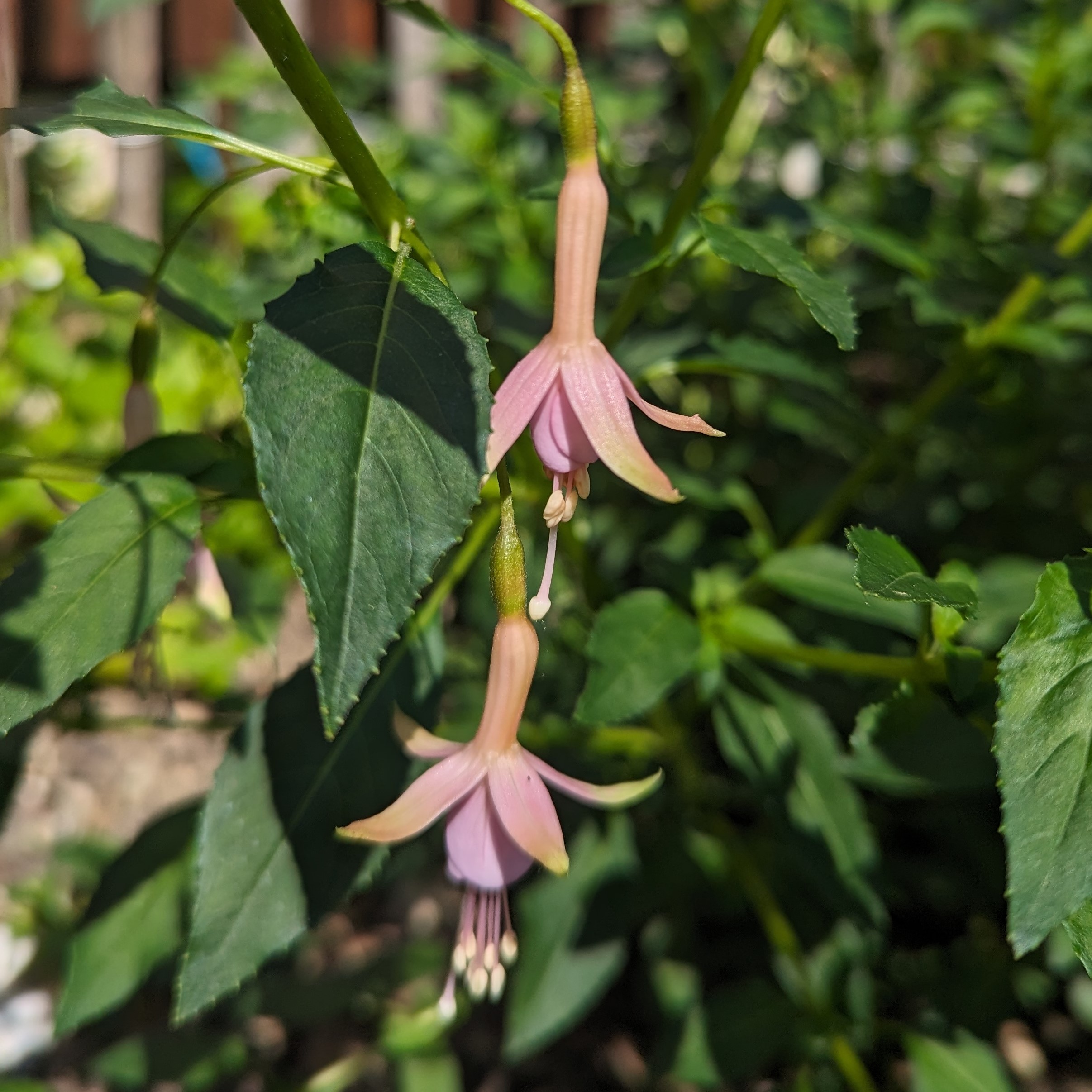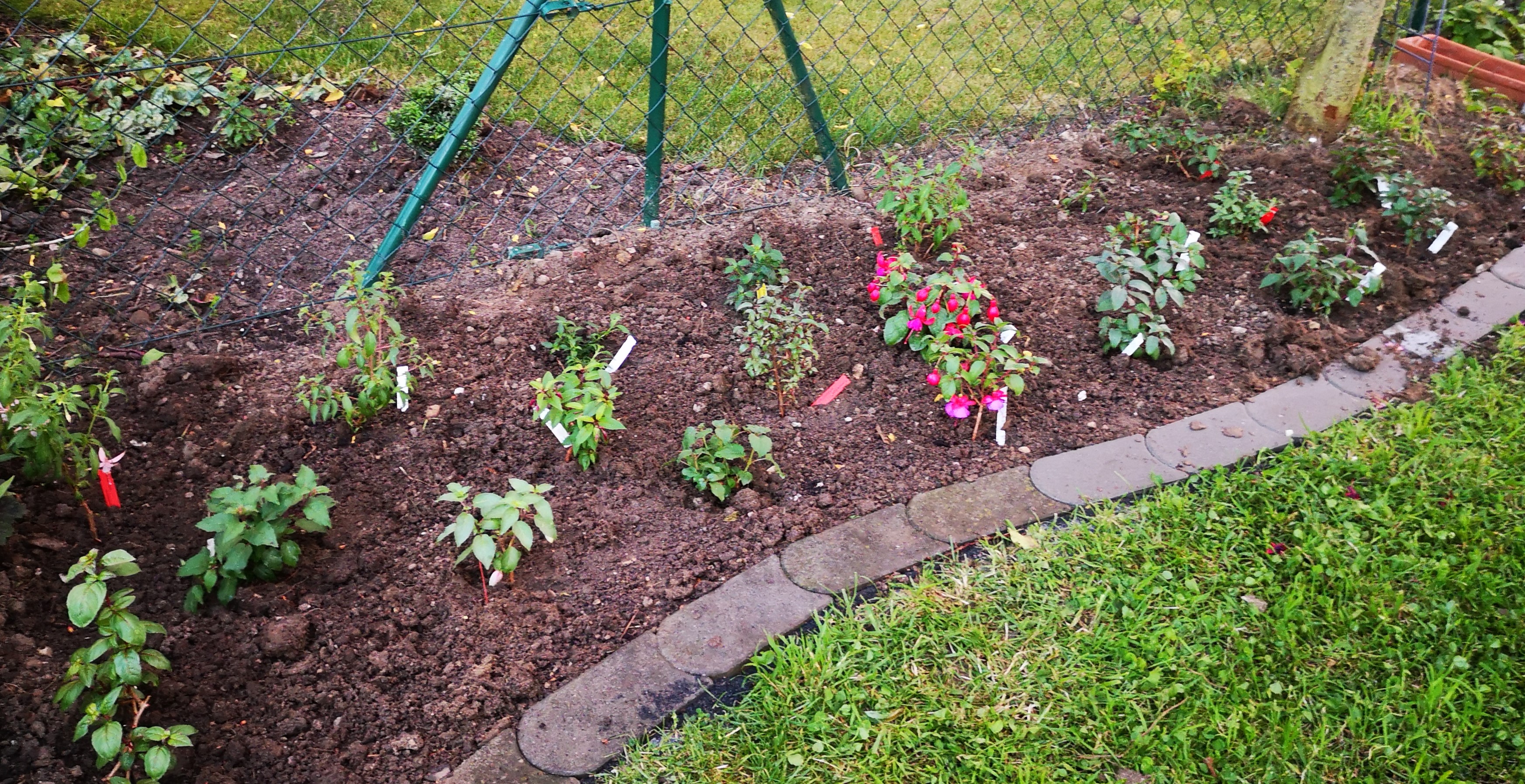 Die beiden Bilder sind 2020 gemacht worden, das ist schon vier Jahre her, eine habe ich umgepflanzt und eine andere ausgebuddelt und verschenkt. Bis auf eine Beacon sind alle wieder gekommen und es waren viele nicht so bekannte Fuchsien dabei, wie die Sanne und die Preston Guild. Ach ja und die De Groots Winter Queen habe ich inzwischen in einem Topf, sie war wunderschön beim Auspflanzen und dann kam fast nichts mehr! Sie lebt, ich weiß aber nicht wie lange noch!