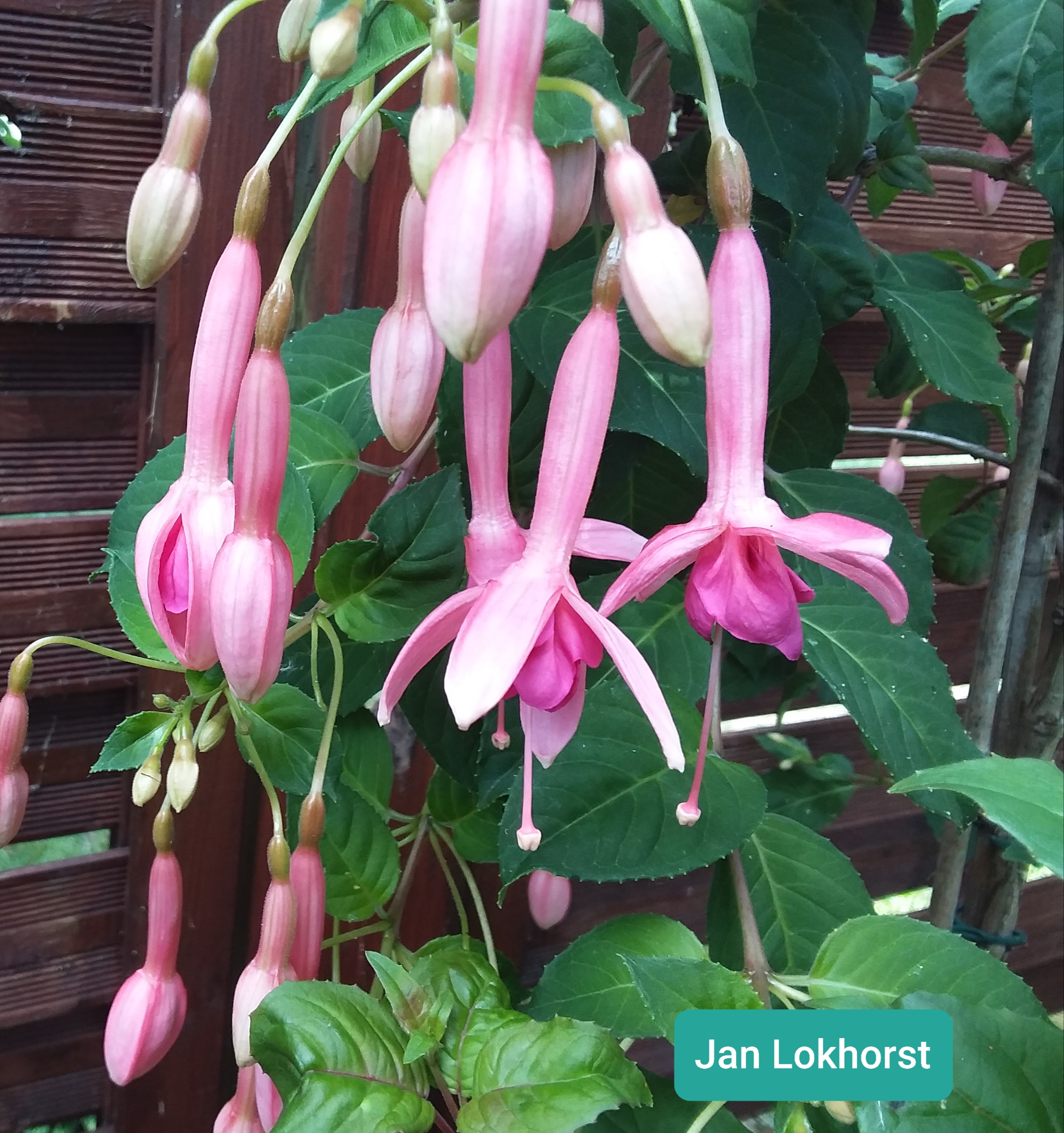 Im Jahr 2018 bekam ich mit einer Fuchsienbestellung den Steckling von ' Jan Lokhorst '. Es ist eine triphyllablütige Fuchsie aus dem Jahr 1996 der niederländischen Züchter Koerts, Tielko.