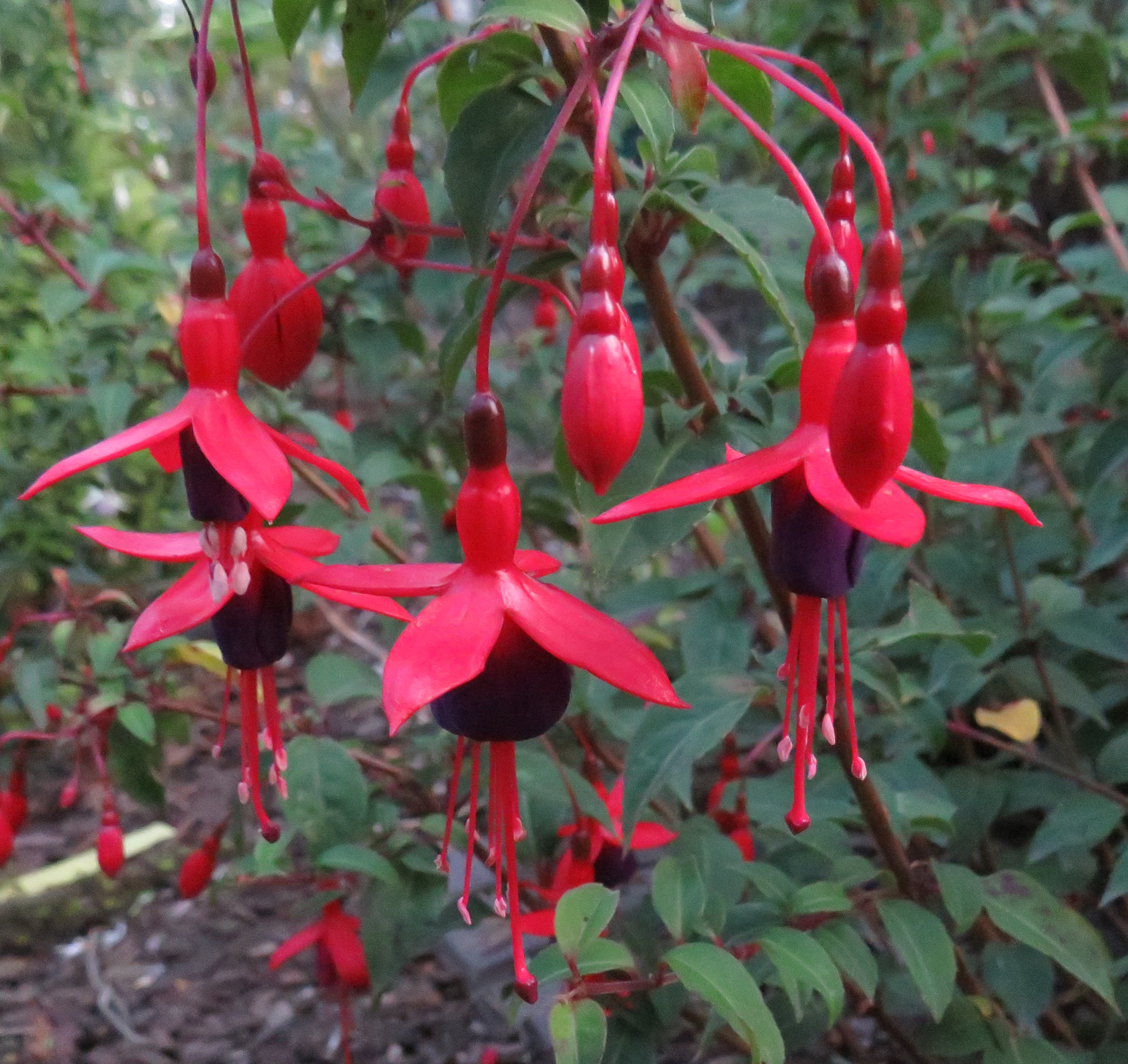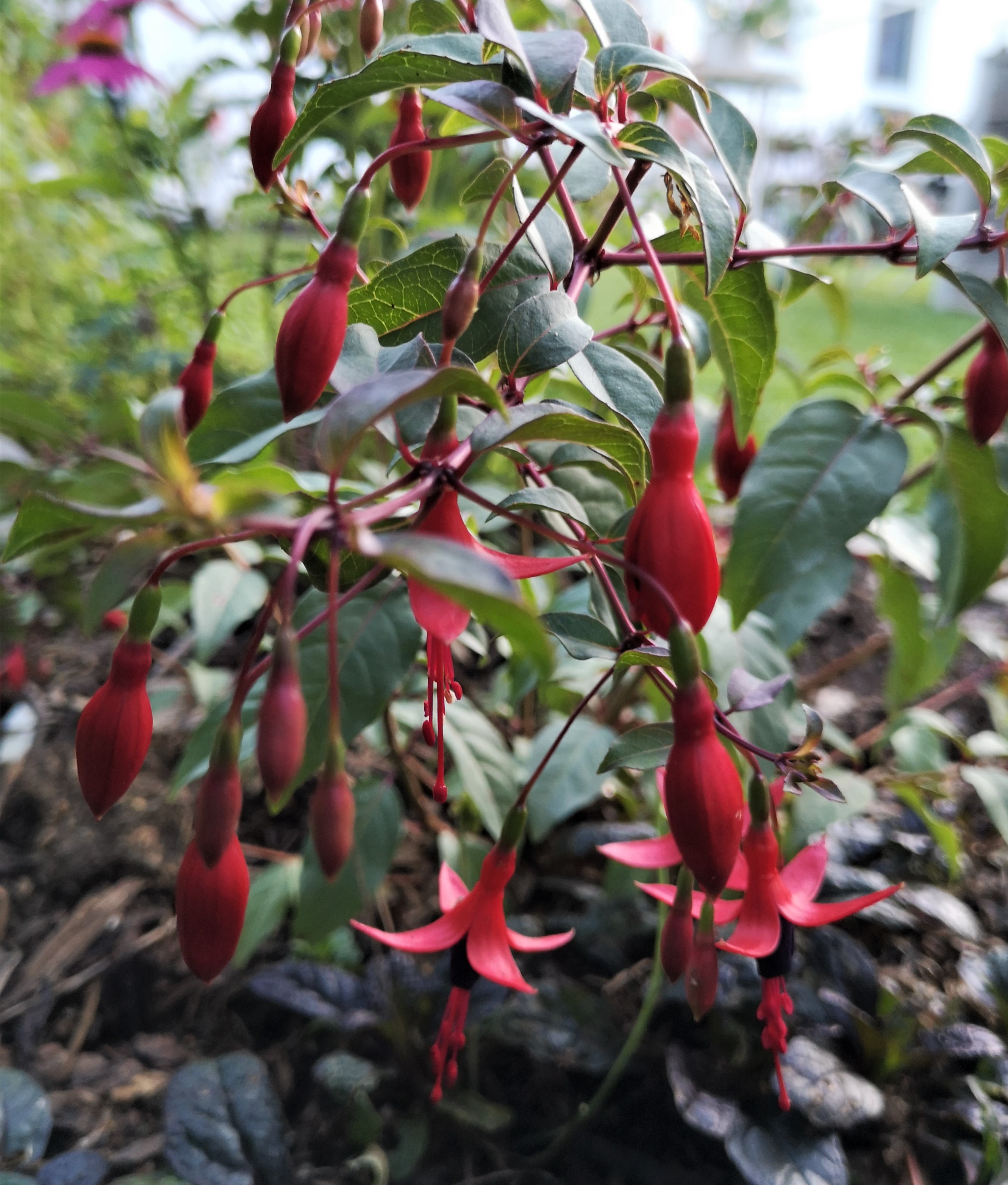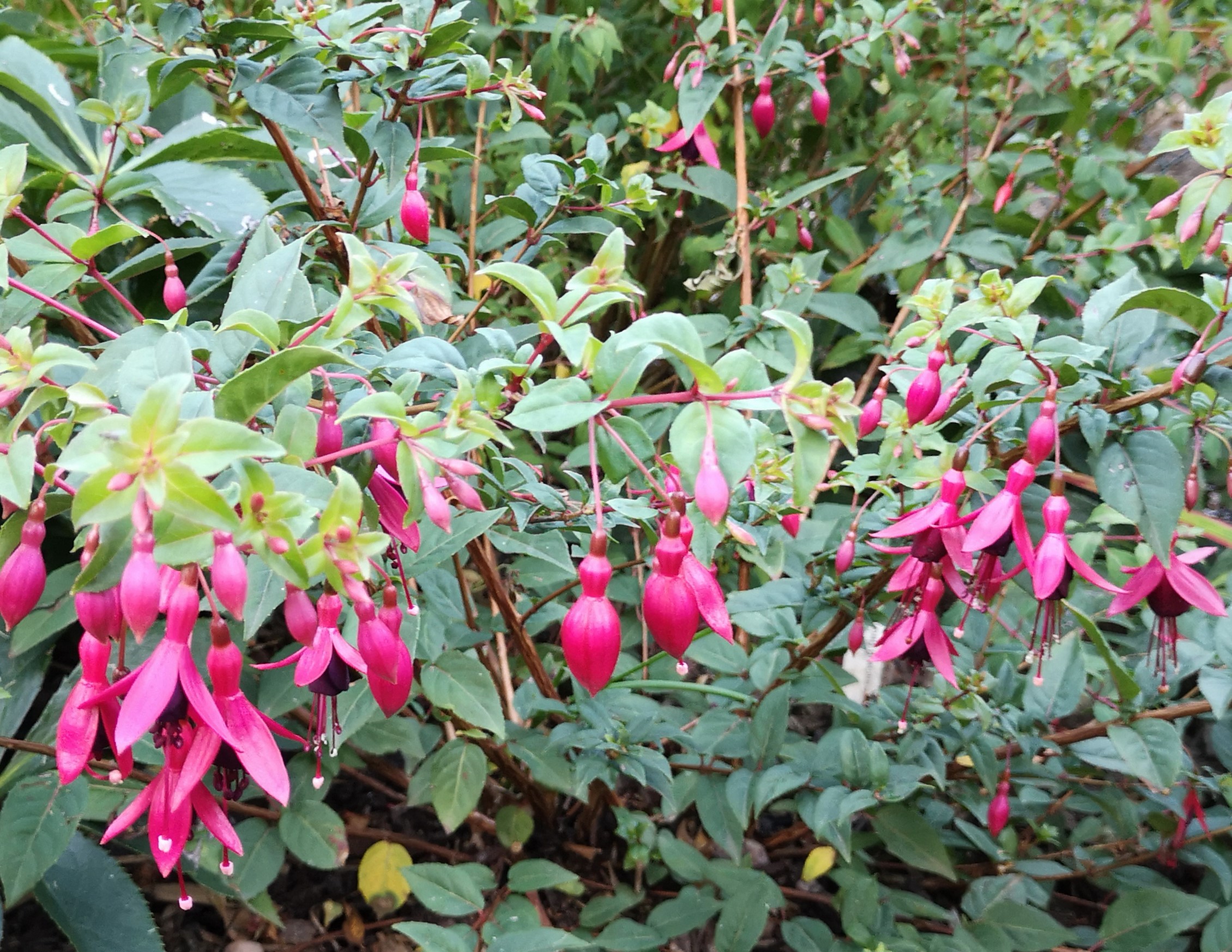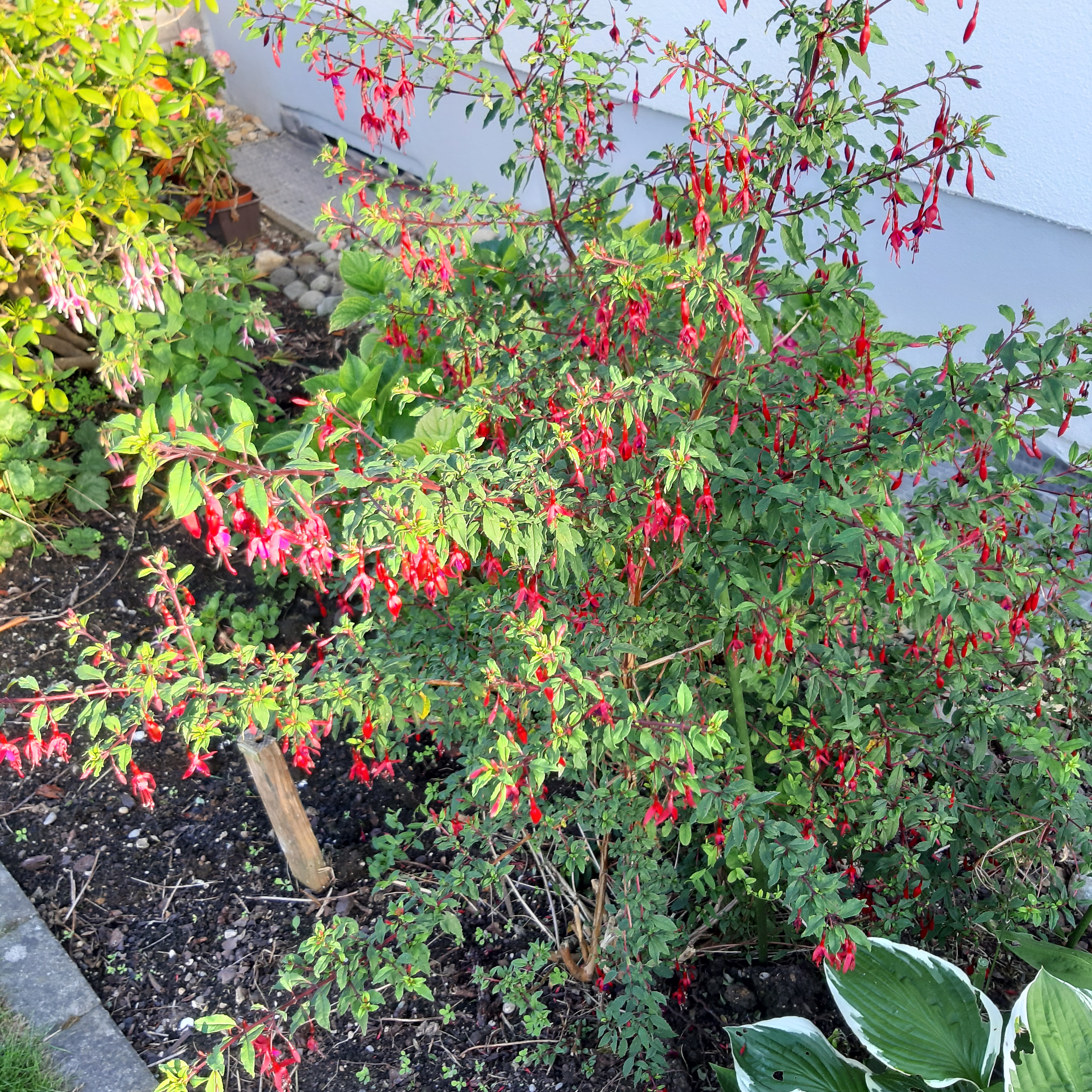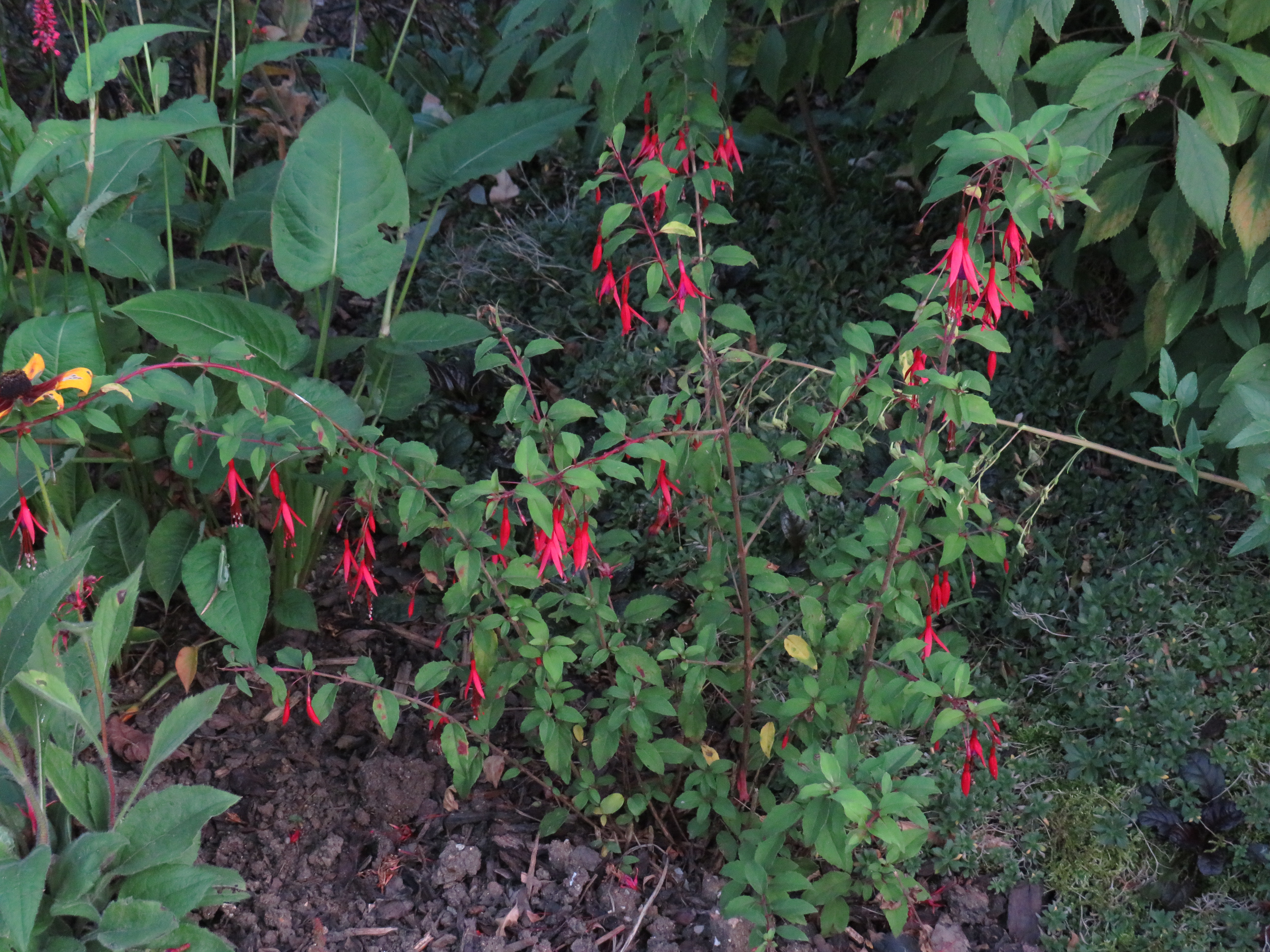 Ich hatte ja versprochen meine wenigen ausgepflanzten winterharten Fuchsien zu zeigen.Letzte Woche habe ich Bilder gemacht sie haben sich sehr viel Zeit gelassen mit der Blütenbildung.