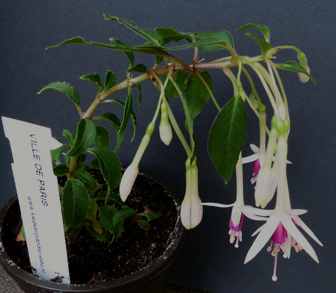 Ich liebe diese Fuchsie (und Paris). Nachdem mich meine langjährige Pflanze verlassen hatte, hatte ich Ende Mai im Schlussverkauf bei Van der Velde Ersatz bestellt. Dieser Winzling muss zwar noch etwas wachsen, aber blühen kann er schon.