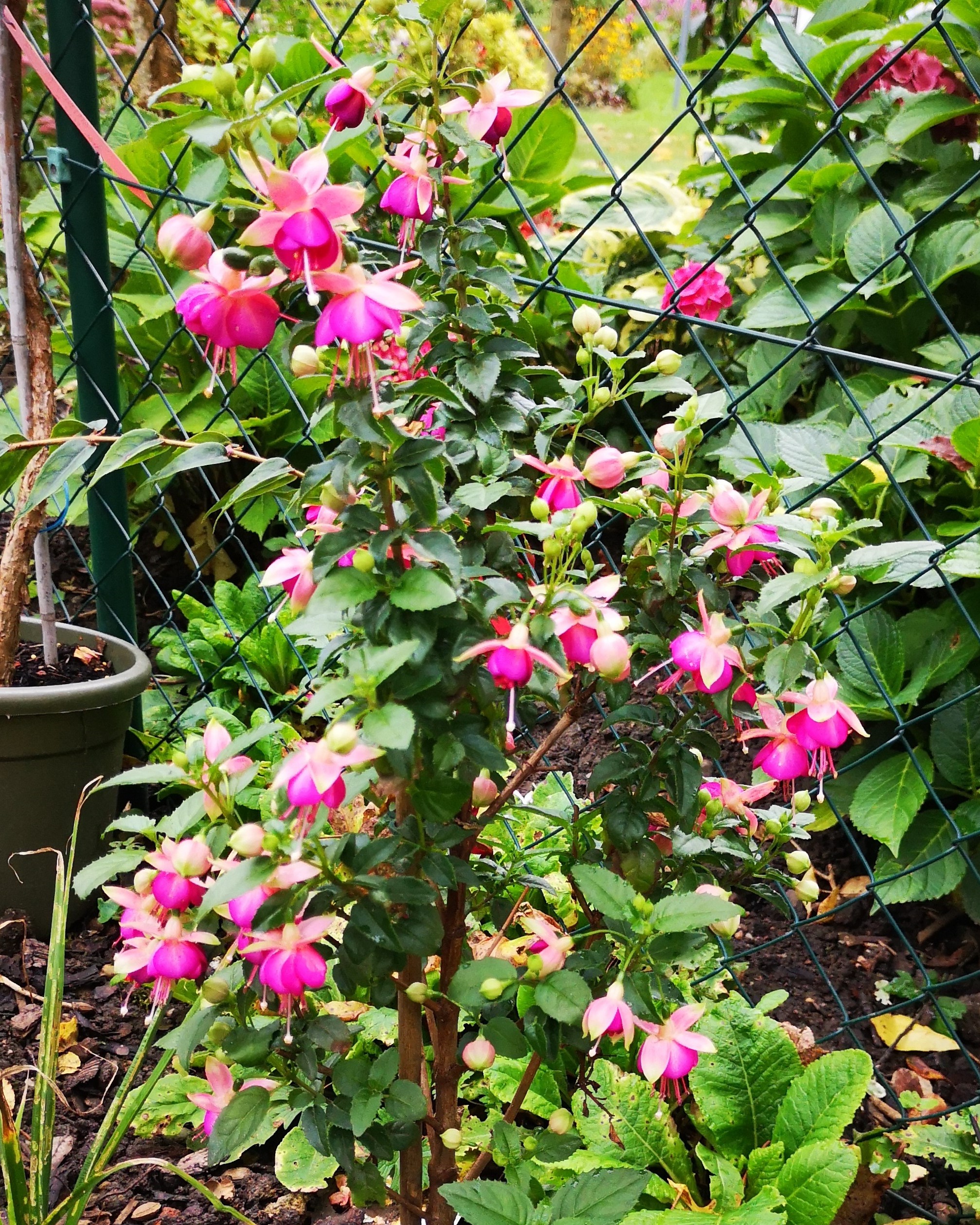 Heute war ich nur kurz im Garten, um die neu eingetopfte Baumarktfuchsie Angela zu fotografieren und die Lambada habe ich ins Beet gesetzt!