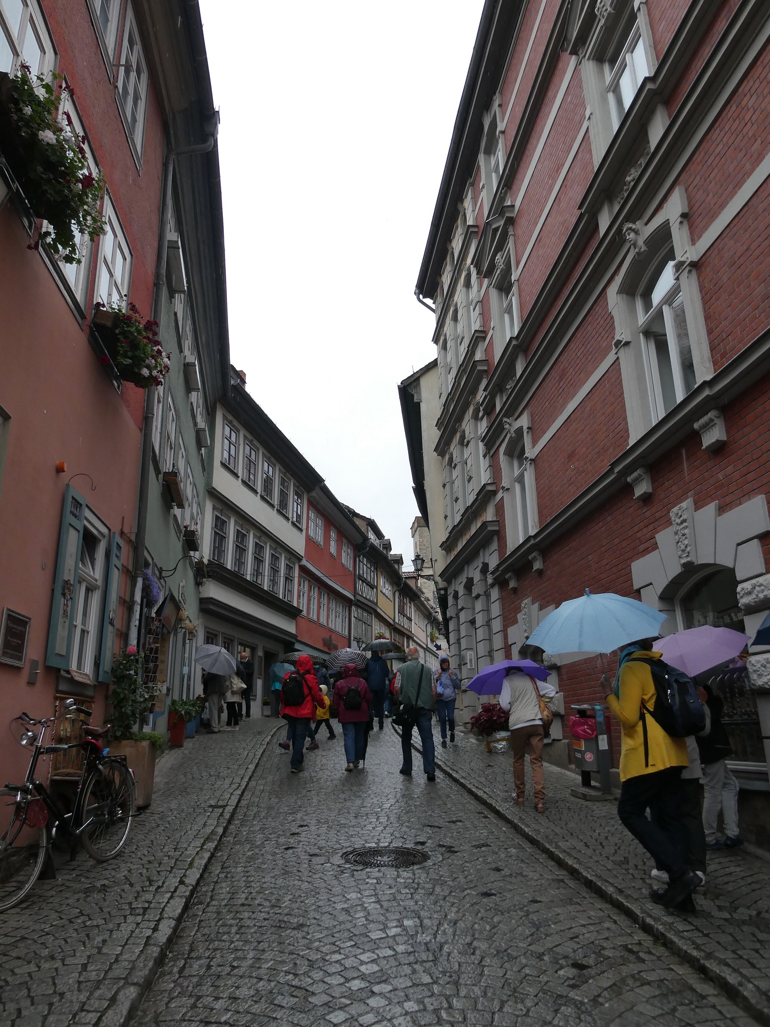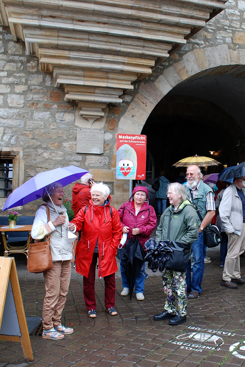 Die Stadtführung in Weimar war sehr interessant und aufschlußreich über Goethe's und Schiller's Wirken. Weiter ging es nach Erfurt. Stadtrundfahrt mit der Straßenbahn. Sehr gut, da es anfing zu regnen. Und es gab tatsächlich noch jemand, der versuchte durch die verregneten Scheiben Fotos zu machen