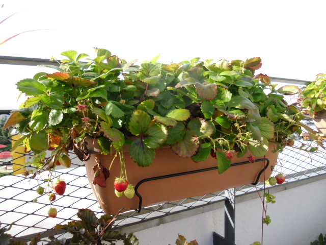 Auch viele andere Blumen und Pflanzen hat Ulrike auf Ihrer Terasse sogar Erdbeeren, da sind außer den Früchten auch noch Blüten vorhanden