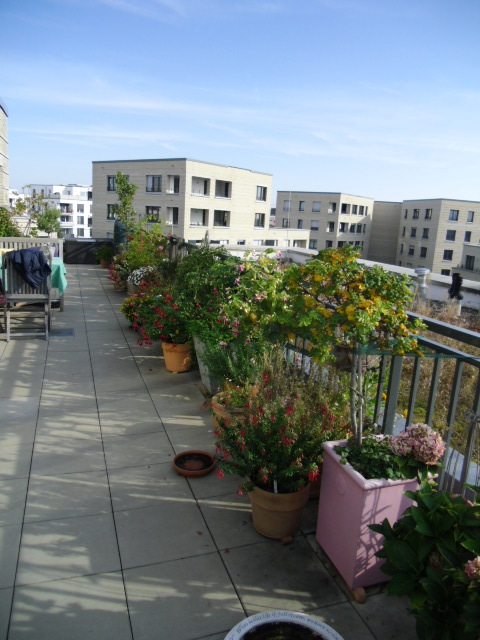 Ich wusste ja, das Ulrike eine Terrasse hat, aber so groß und über den Dächern von Frankfurt ist schon herrlich!