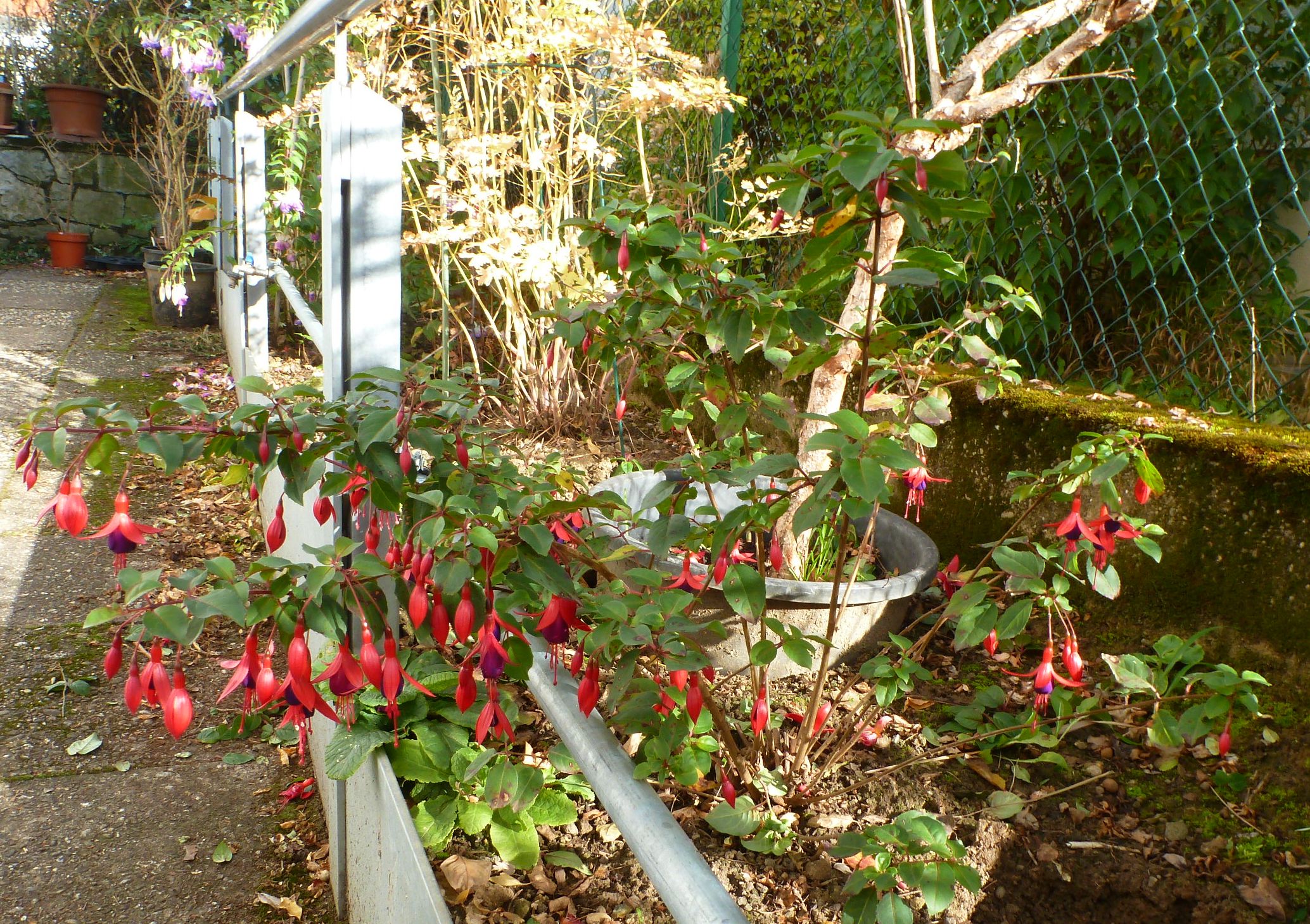 Nachdem jetzt alle Fuchsien zurückgeschnitten sind, kann ich mich noch an den winterharten Fuchsien erfreuen:
