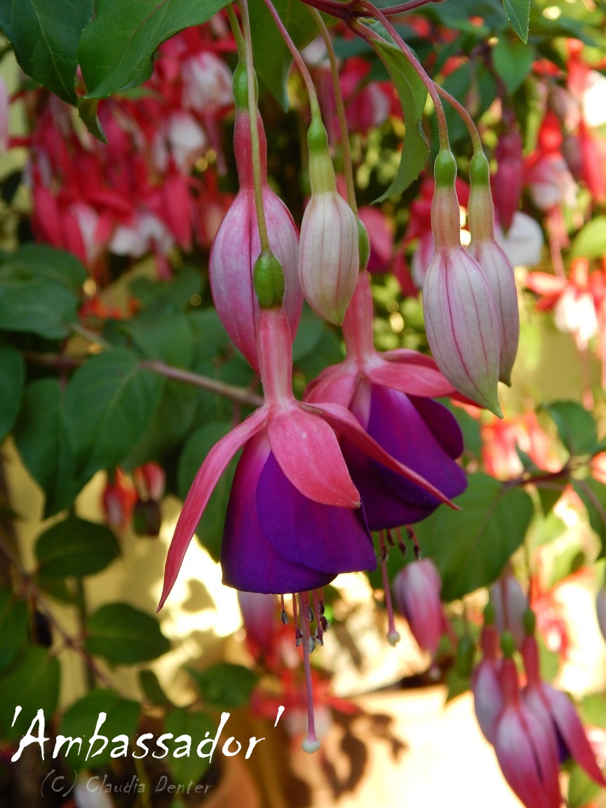 Es sind natürlich unterschiedliche Blühstadien, aber die 'Ambassador' blüht meiner Beobachtung nach nicht Glockenförmig. Auch die Sepalen sind nicht so hoch und gedreht.