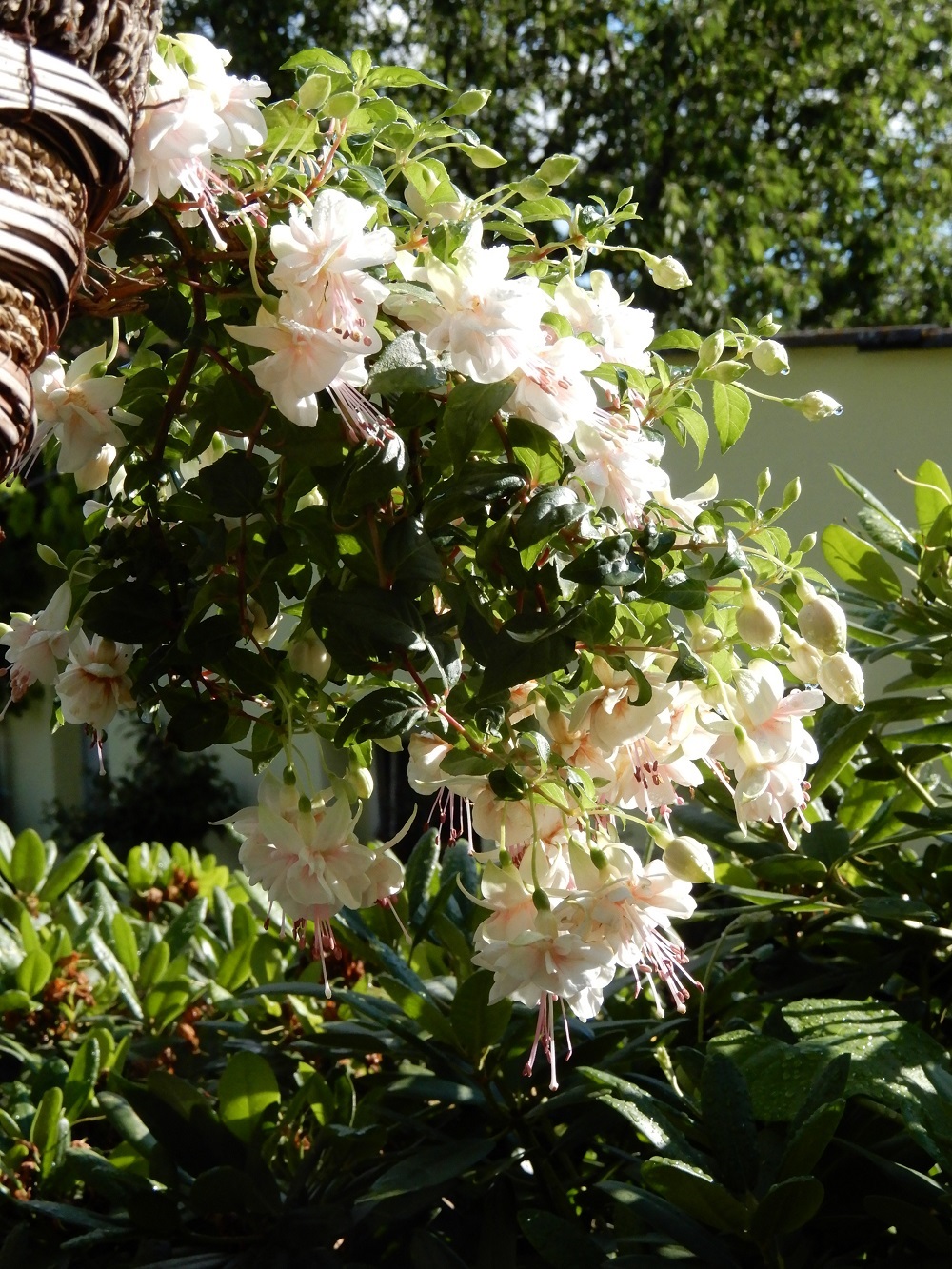 Die hatte ich auch 2 oder 3 Jahre .Eine eher unauffällige Fuchsie die gerne im Hinterkopf verschwindet.Sie ist sehr hübsch sehr weiß hat die roten Staubgefäße von "Bobby Shafto" und ist ihr in vielem ähnlich.