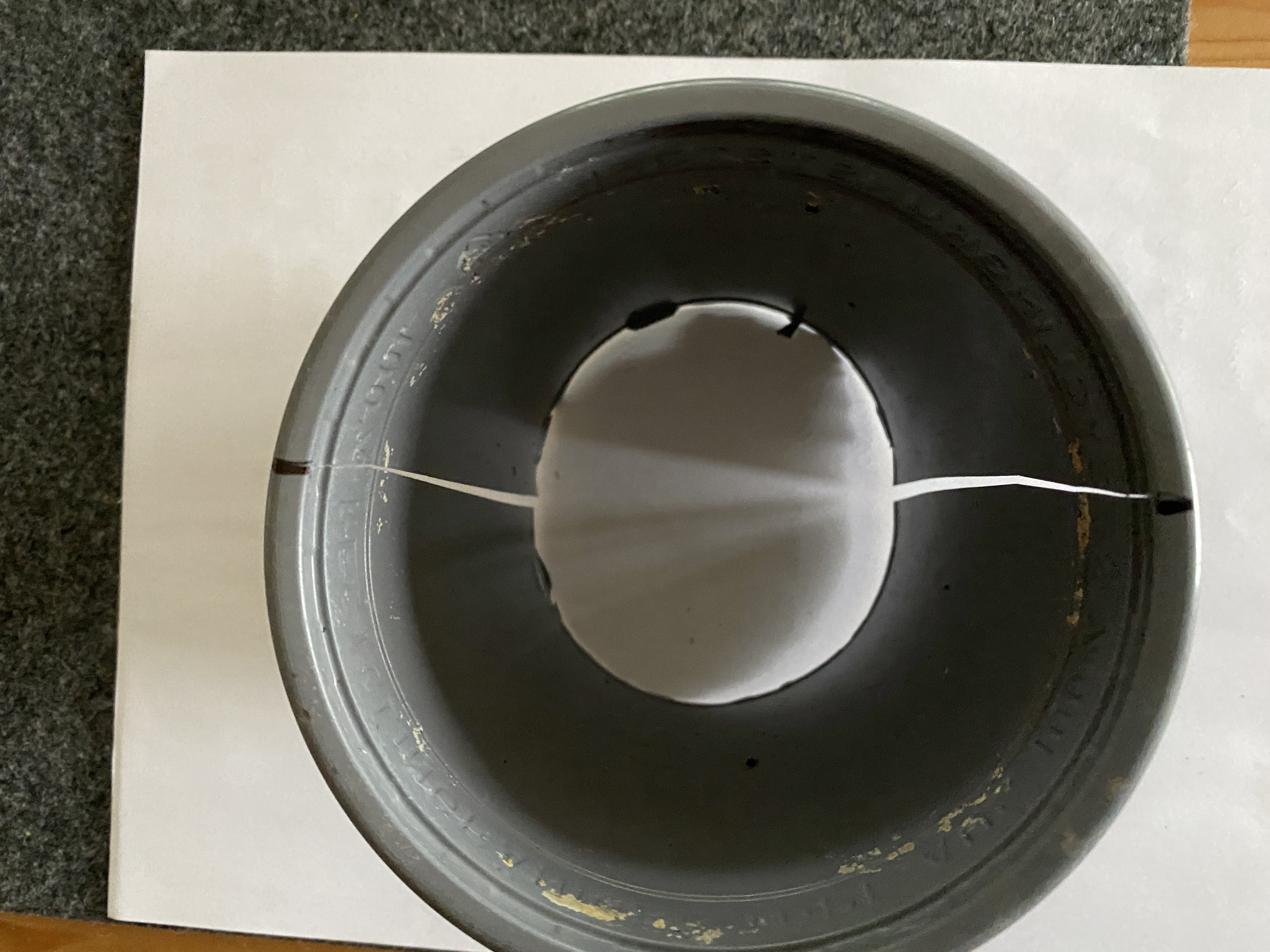 Foto 1 (aufgeschnittener Topf von oben gesehen mit Schnittmarke)