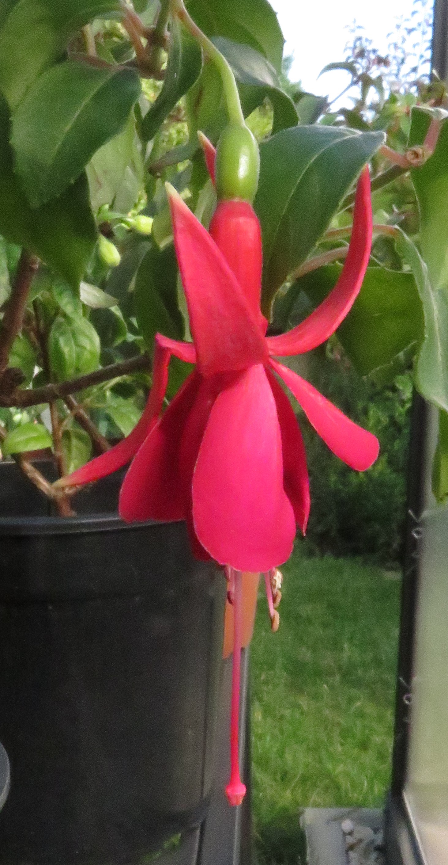 Ich habe die Fuchsie letztes Jahr von Renate bekommen. Die Überwinterung erfolgt in einem unbeheiztem hellen Zimmer. Sie hat ein besonders schöne rote Blüte. Ich hatte sie im Sommer im Halbschatten stehen.