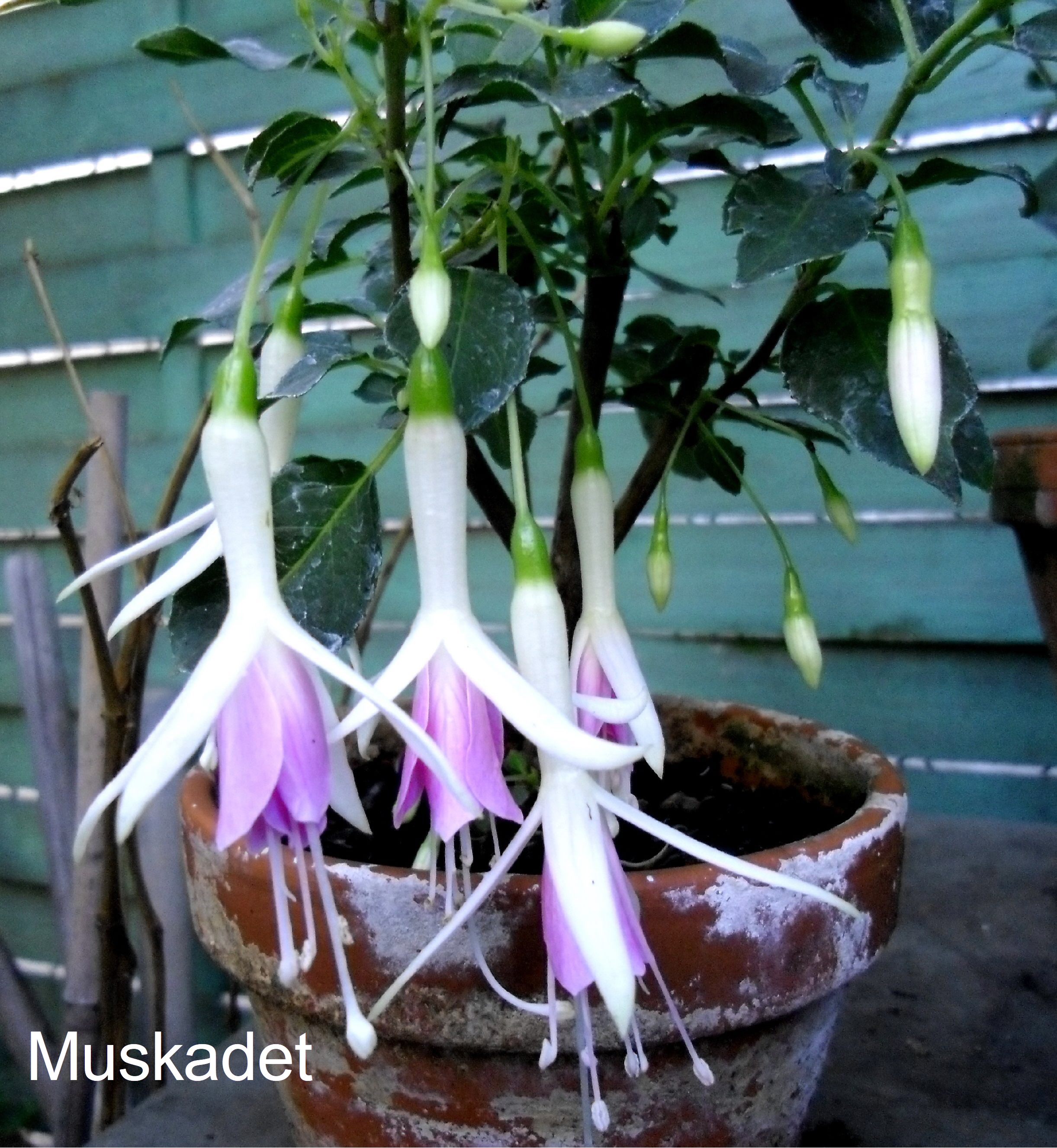 Da ist mir beim Durchsehen von Fotos die `Muscadet` aufgefallen. Bei einem Freundeskreistreffen der Hannoveraner Fuchsienfreunde im Jahr 2018 brachte Herr Saak diese stattliche Schale für Hans- Jürgen mit und alle waren begeistert. Da habe ich dieses Foto auch gemacht. Hans-Jürgen hat mir dann 2020 einen Steckling überlassen und nun erfreut mich `Muscadet` auch in meinem Garten. Ich finde diese Blütenfarben in weiß-rosa mit dem gezackten Blütenröckchen imposant. Edeltraud zeigt auch Fotos in ihrer Galerie. Sie blüht wirklich traumhaft . Bisher habe ich sie auch immer gut überwintert.