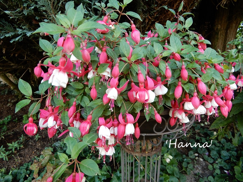 Meine ' Hanna' , ein Steckling vom letzten Jahr, zeigt erste Blüten.Ich habe eine Weile danach gesucht und im letzten Jahr konnte ich sie bekommen. ' Hanna ' ist eine Züchtung aus dem Jahr 1956 von Elsner. Es ist eine der wenigen Fuchsienhybriden, die in der ehemaligen DDR erhältlich waren.
