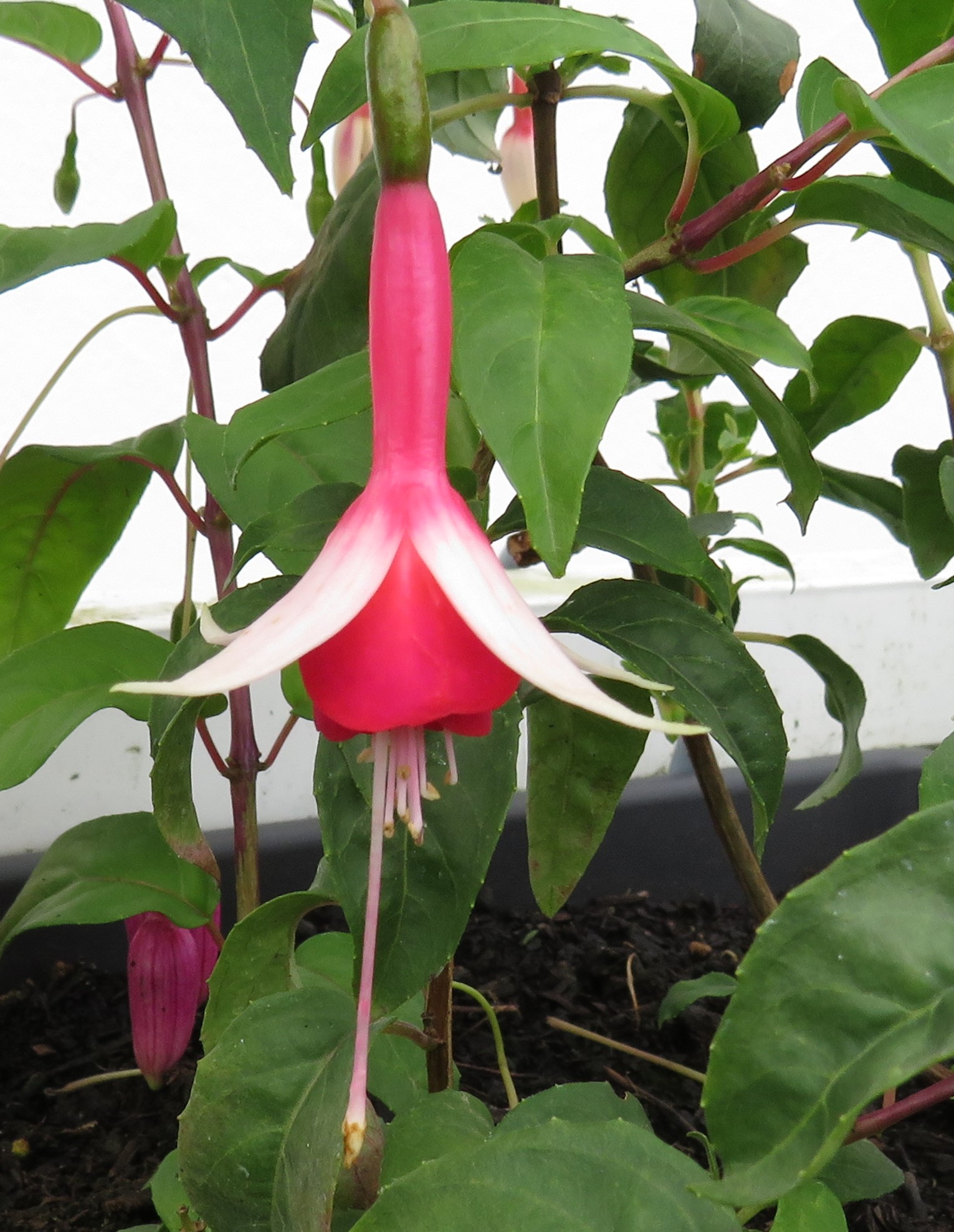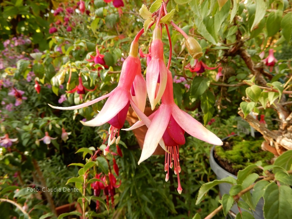 Es ist eine Fuchsie für den Halbschatten, denn nur dann macht sie schöne weiche Triebe die auch gut Blüten ausbilden.