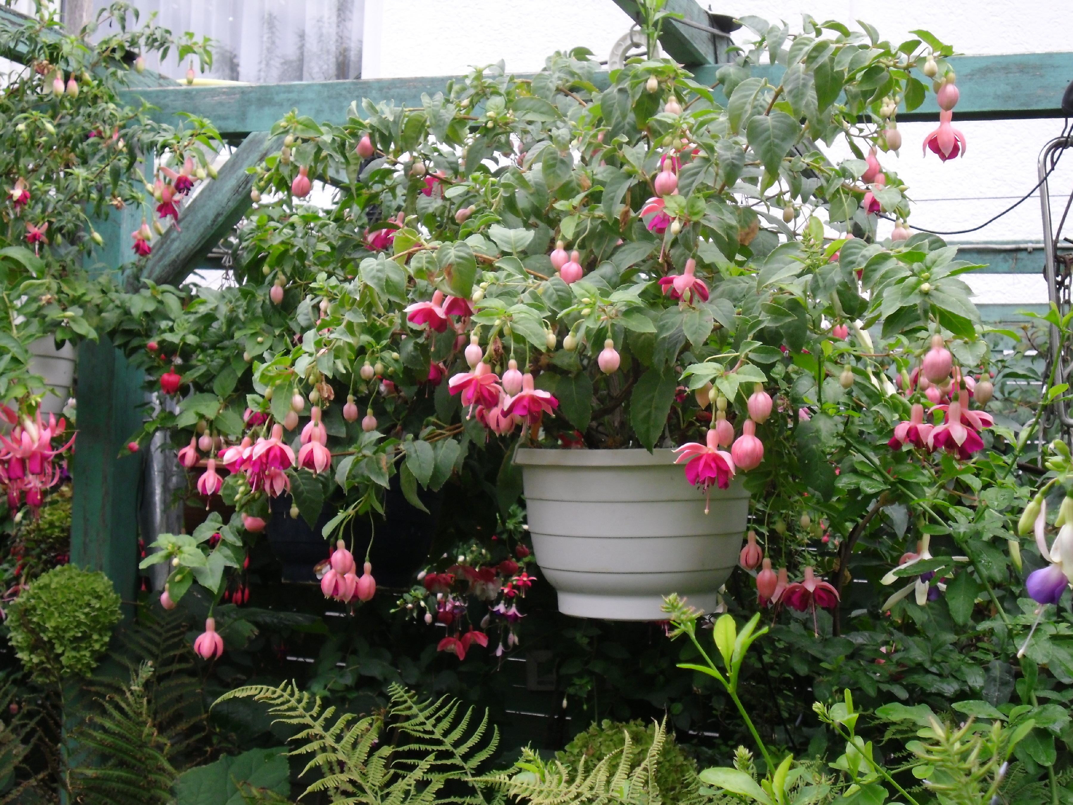 Die Ampel hab ich immernoch.Es war auch eine der letzten Fuchsien welche ich eingeräumt hatte.Sie ist jetzt schon wieder fast voll belaubt und da sie letztes Jahr schon so riesig war spiele ich mit dem Gedanken sie in einen großen Topf zu setzen denn im Garten ist kein Platz zum Auspflanzen.Mittlerweile habe ich drei große Pflanzen da ich durch einen "glücklichen" Zufall von einer Gärtnerei zwei neue bekommen habe.Mal sehn was ich mit diesesn mache.Über die Robustheit und Blütenfülle bgauche ich ja nicht mehr zu schreiben das wurde vorher ja zur Genüge getan,