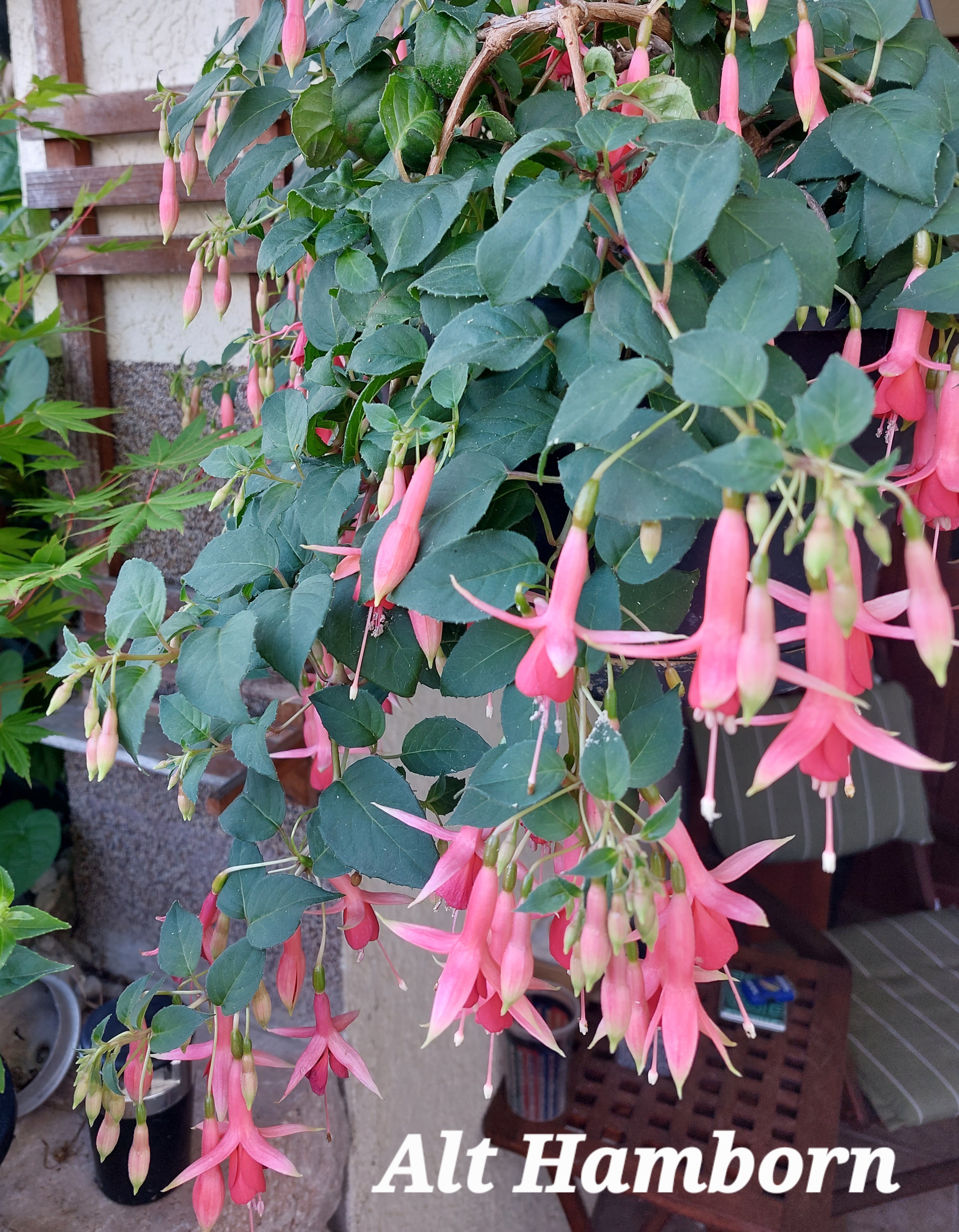Alt Hamborn ist eine schöne orangefarbene, gesunde Fuchsie. Sie blüht immer als eine der Ersten und ohne Unterbrechungen bis zum Herbst. Sie hatte bei mir auch keine Probleme in der Sonne.