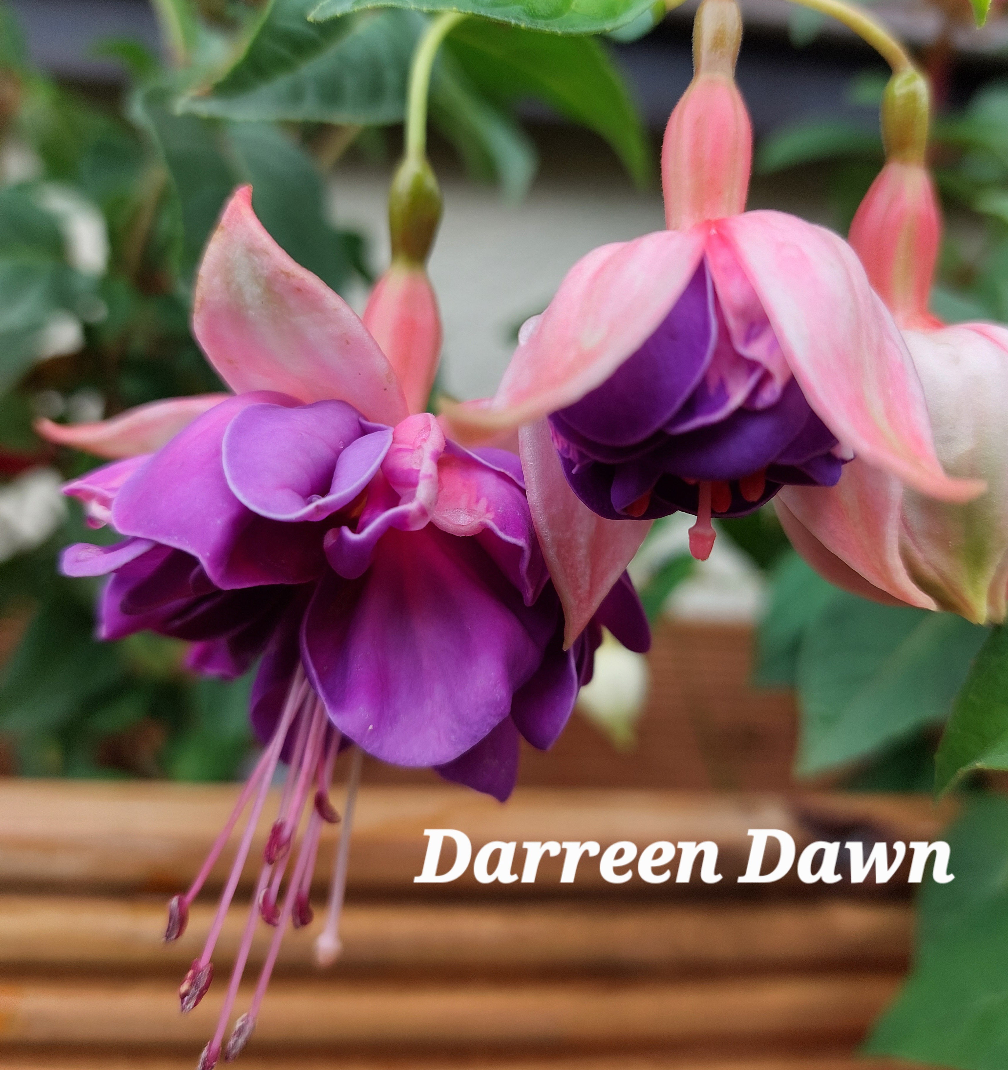 Ich habe auch noch eine sehr schöne Fuchsie zu zeigen. ' Darreen Dawn' habe ich seit dem letzten Jahr. In diesem Jahr hat sie sehr spät zu blühen angefangen. Sie darf ihre Schönheit noch im Gewächshaus eine Weile präsentieren.