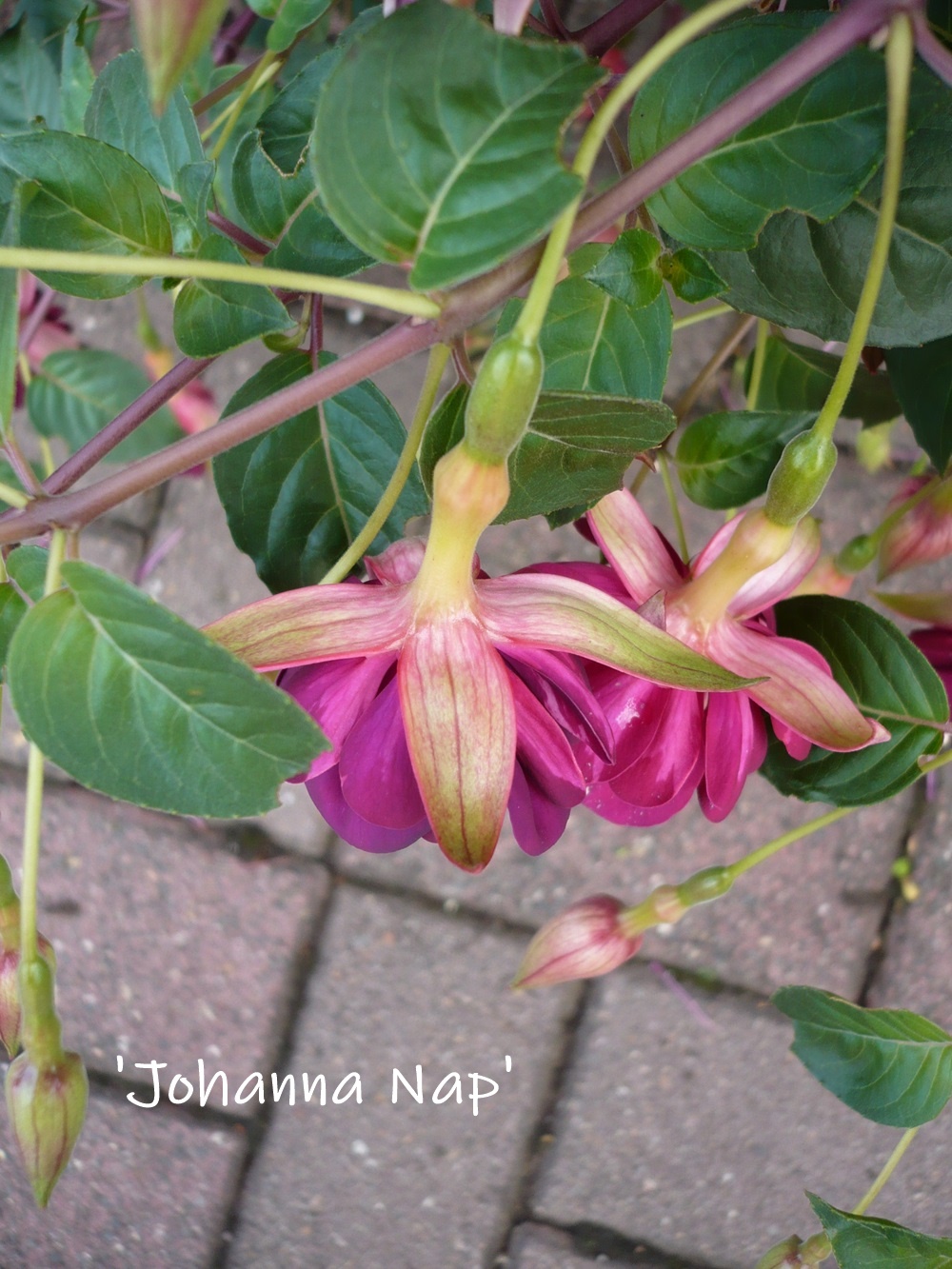 'Johanna Nap' ist eine Fuchsie mit hohem Wiedererkennungswert. Alleine die besondere Farbzusammenstellung ist bemerkenswert.