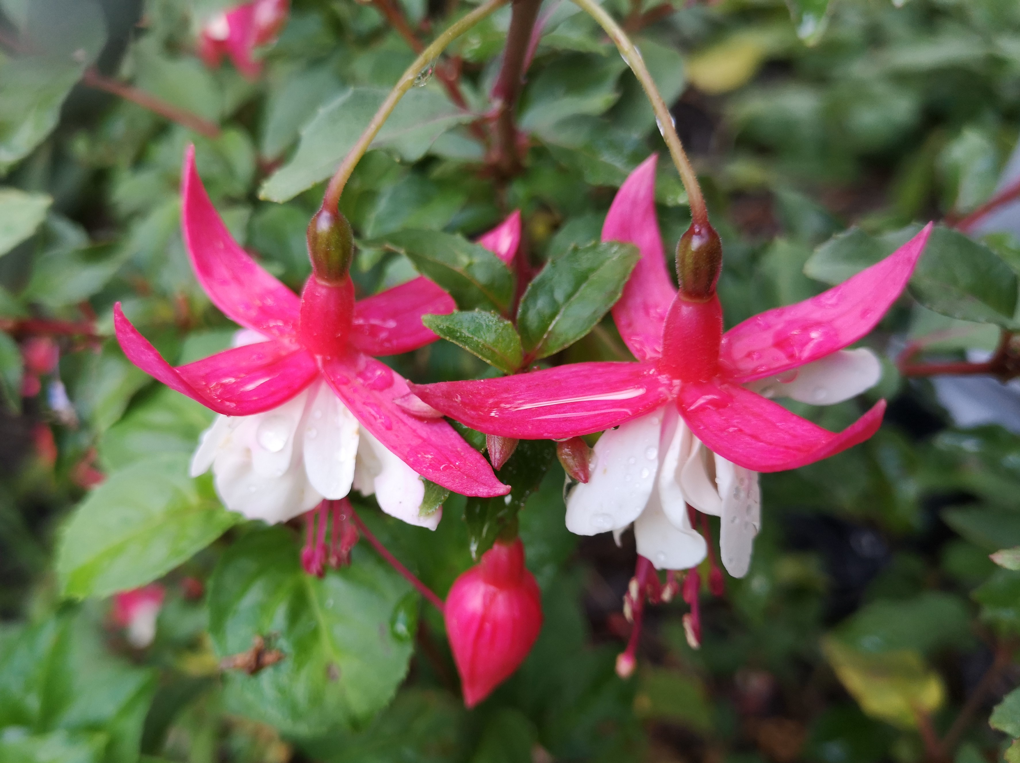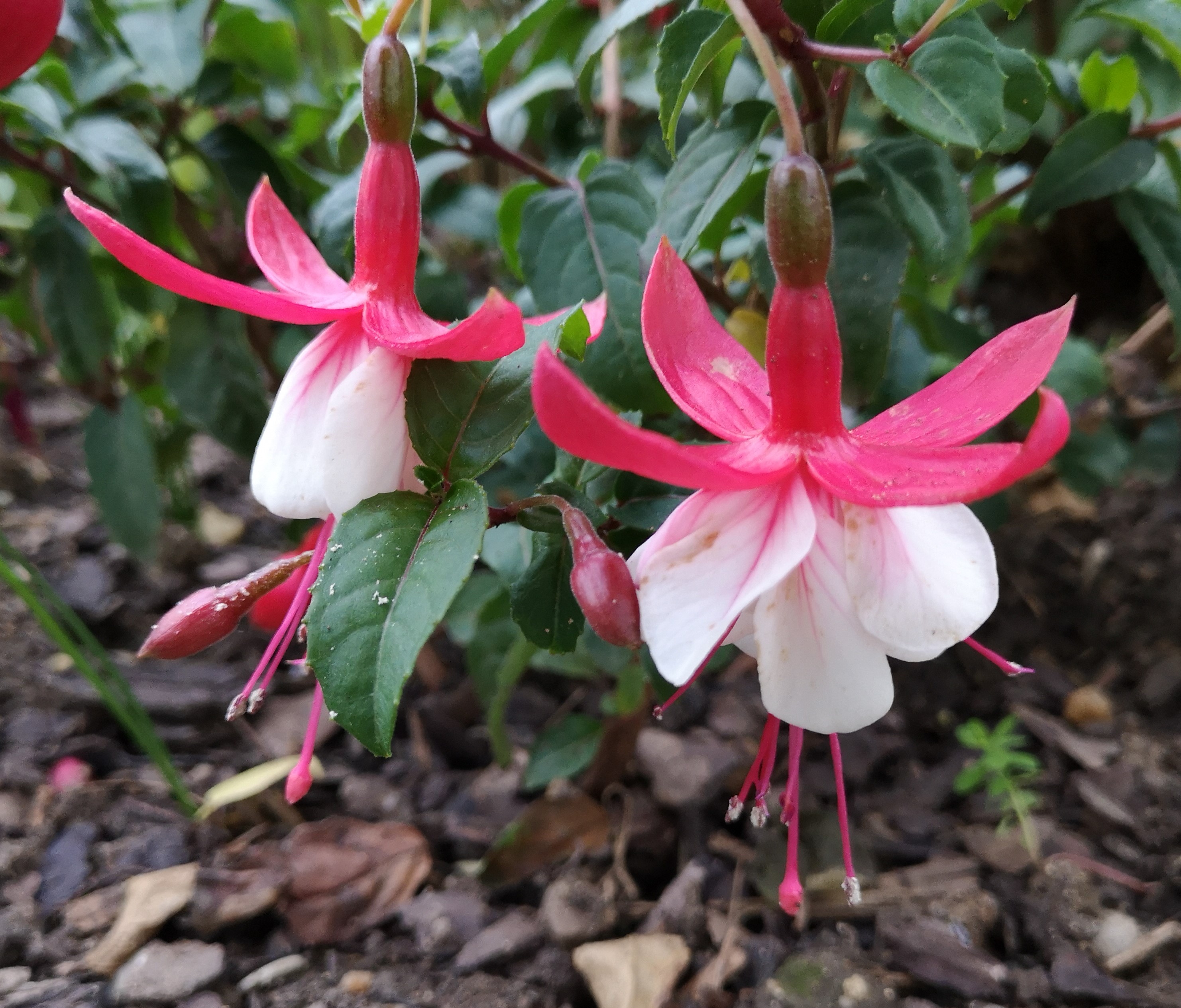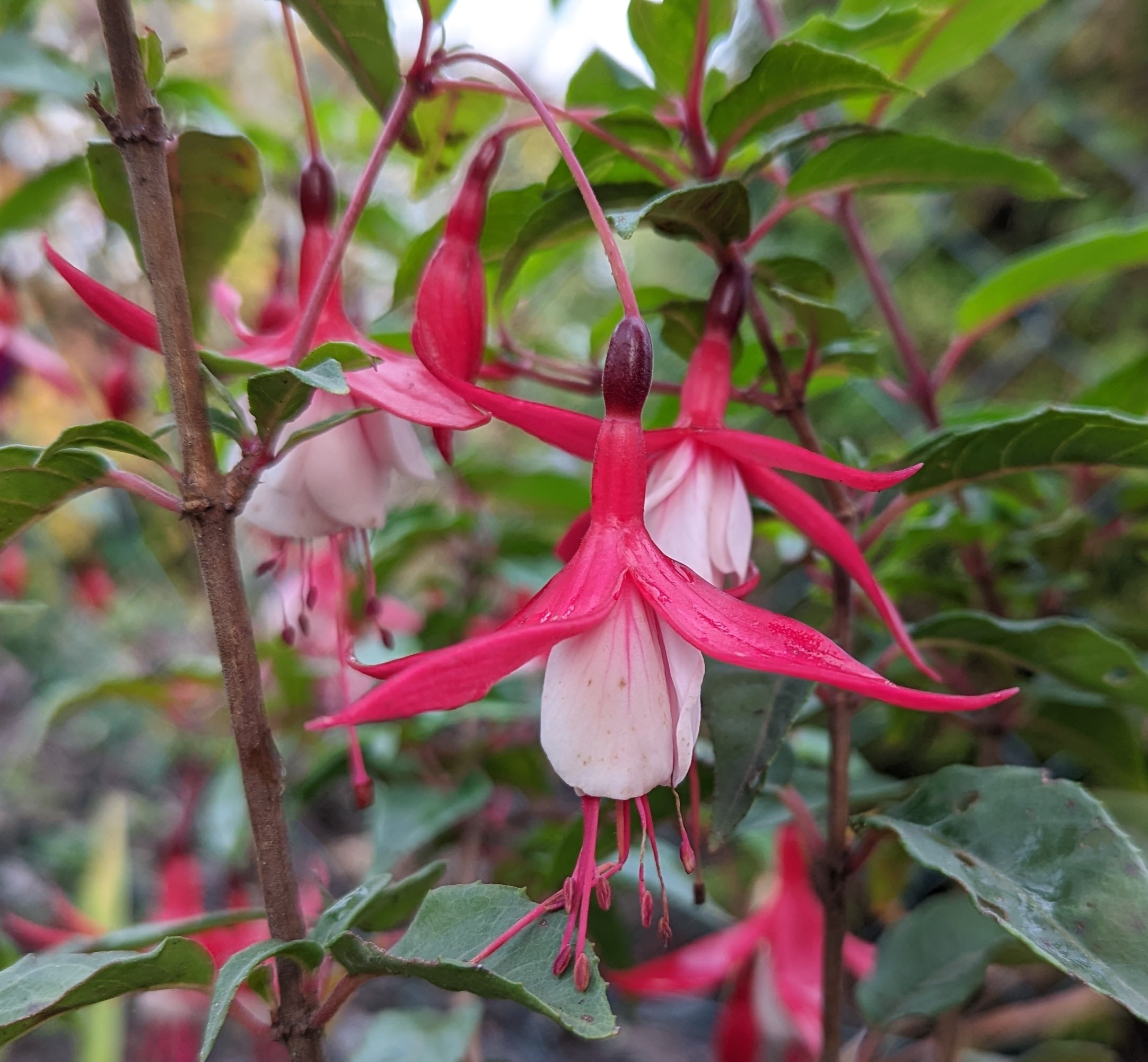 Rot weiß mag einer langweilig finden, für mich ist das der Inbegriff einer Fuchsie. Bei den Winterharten habe ich aber nur die Madame Cornelsen und die hat bei mir dieses Jahr sehr spät mit der Blüte angefangen. Habe leider kein Foto von ihr gemacht