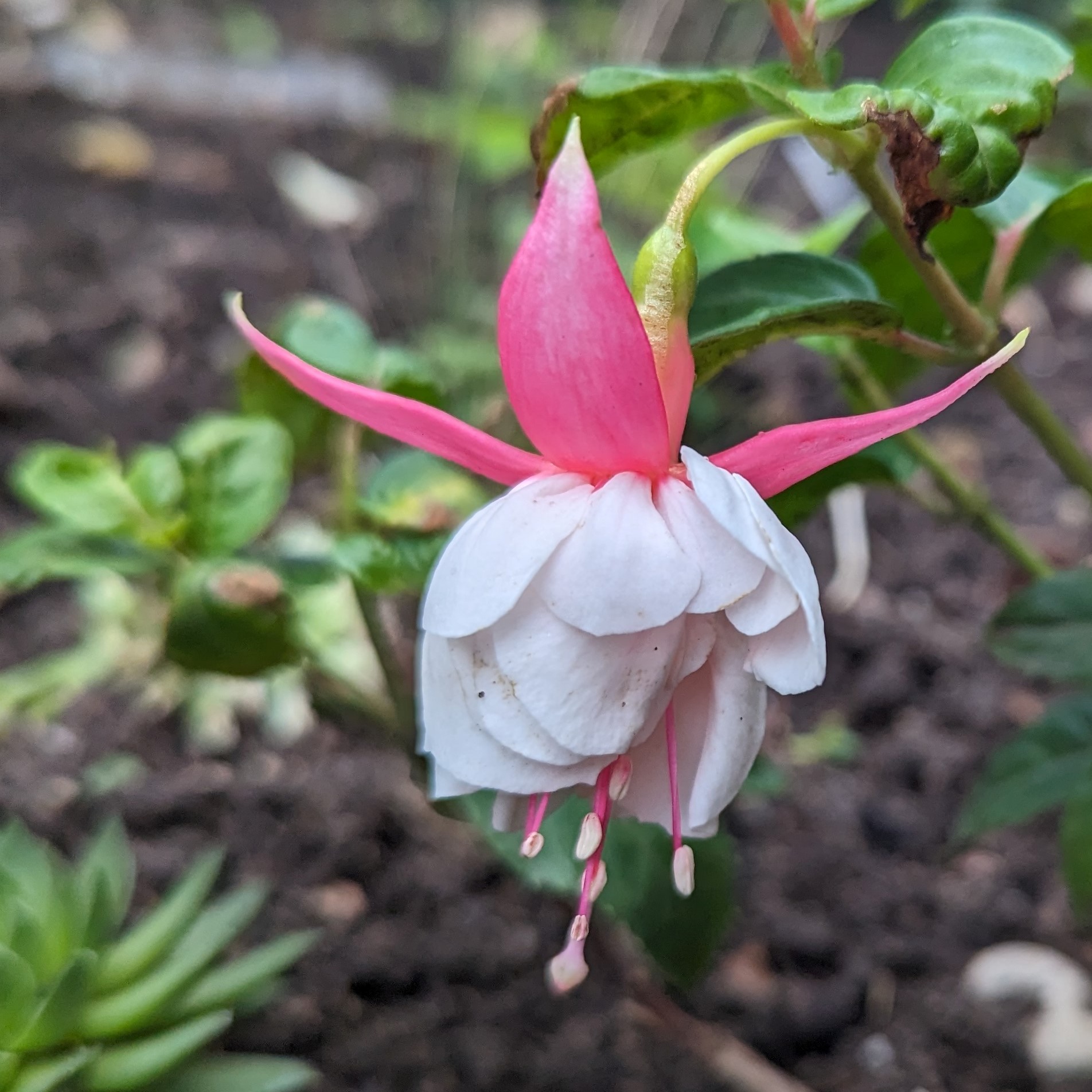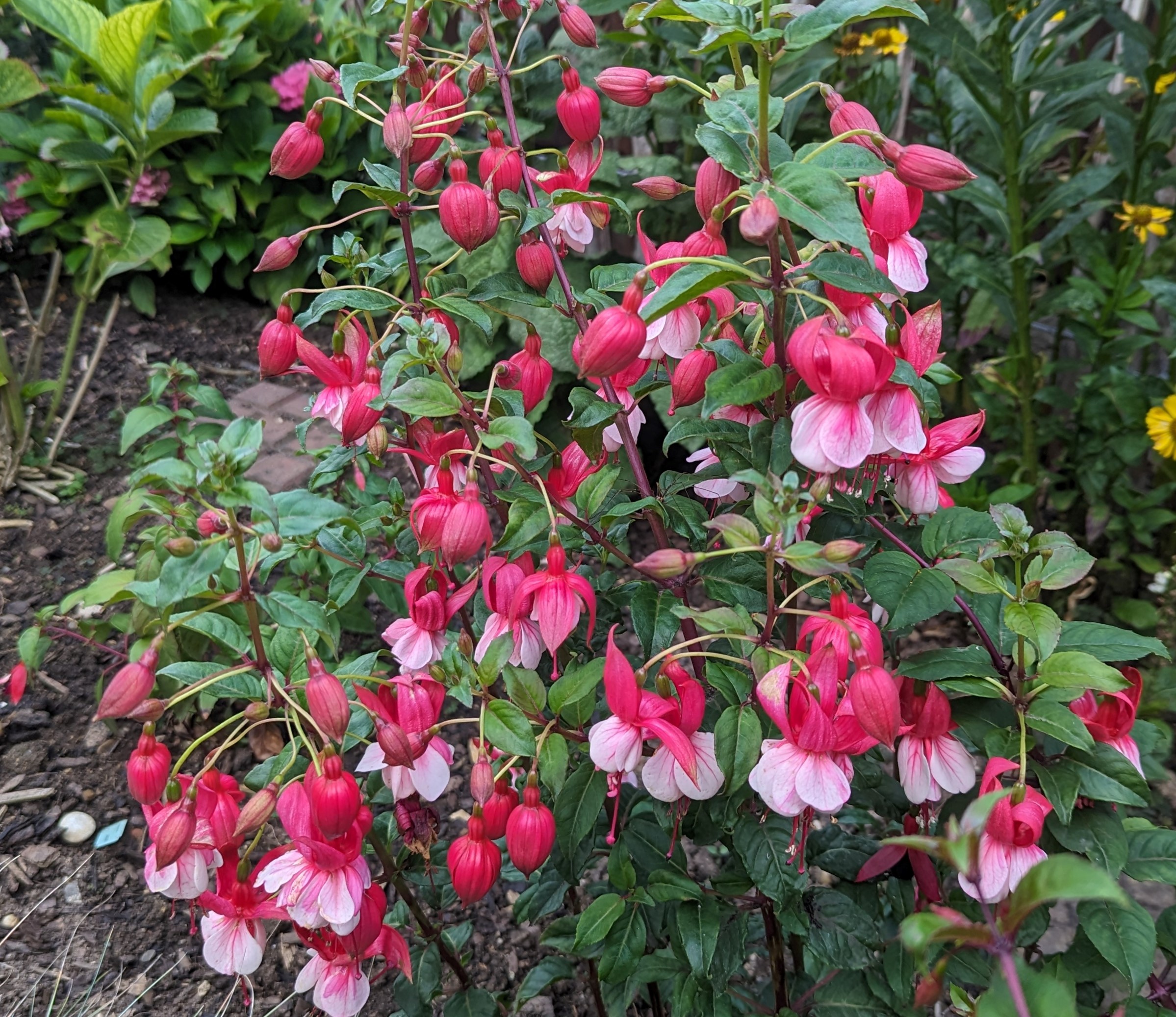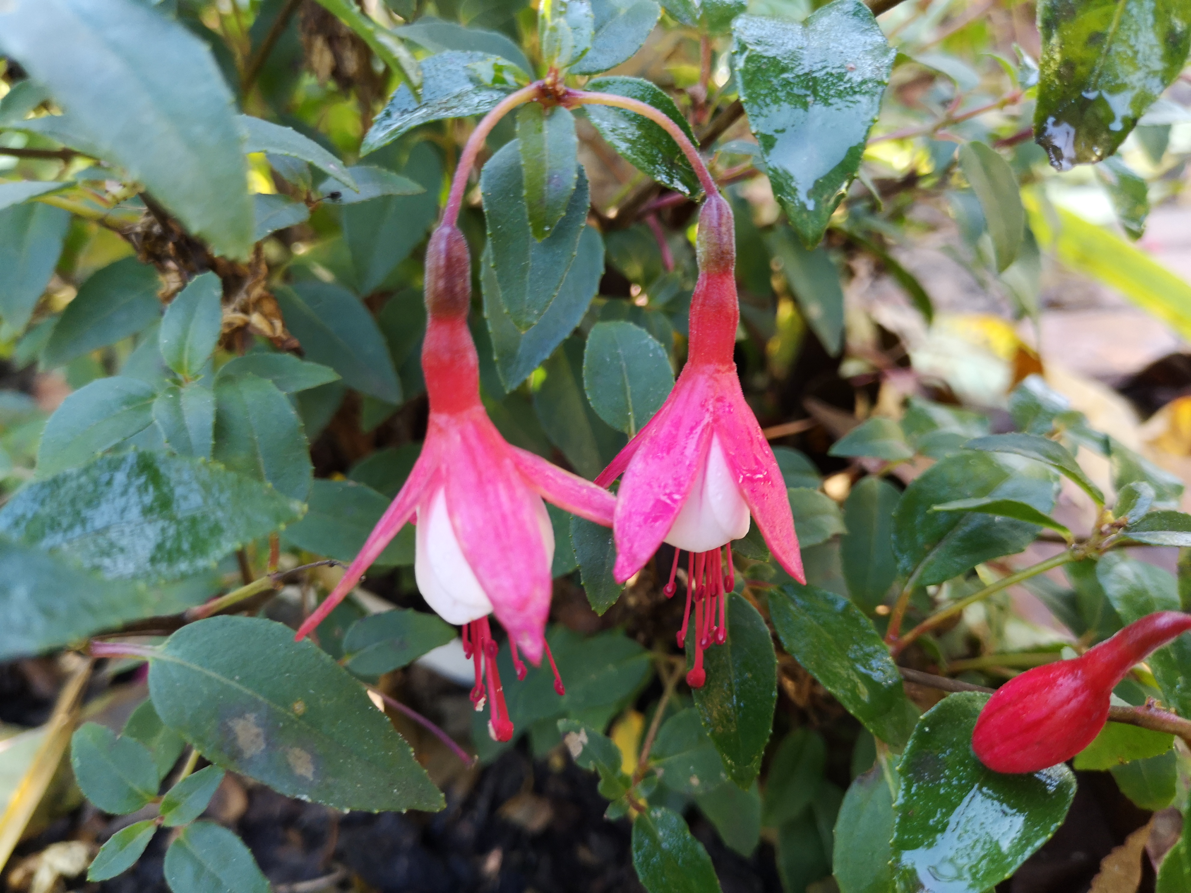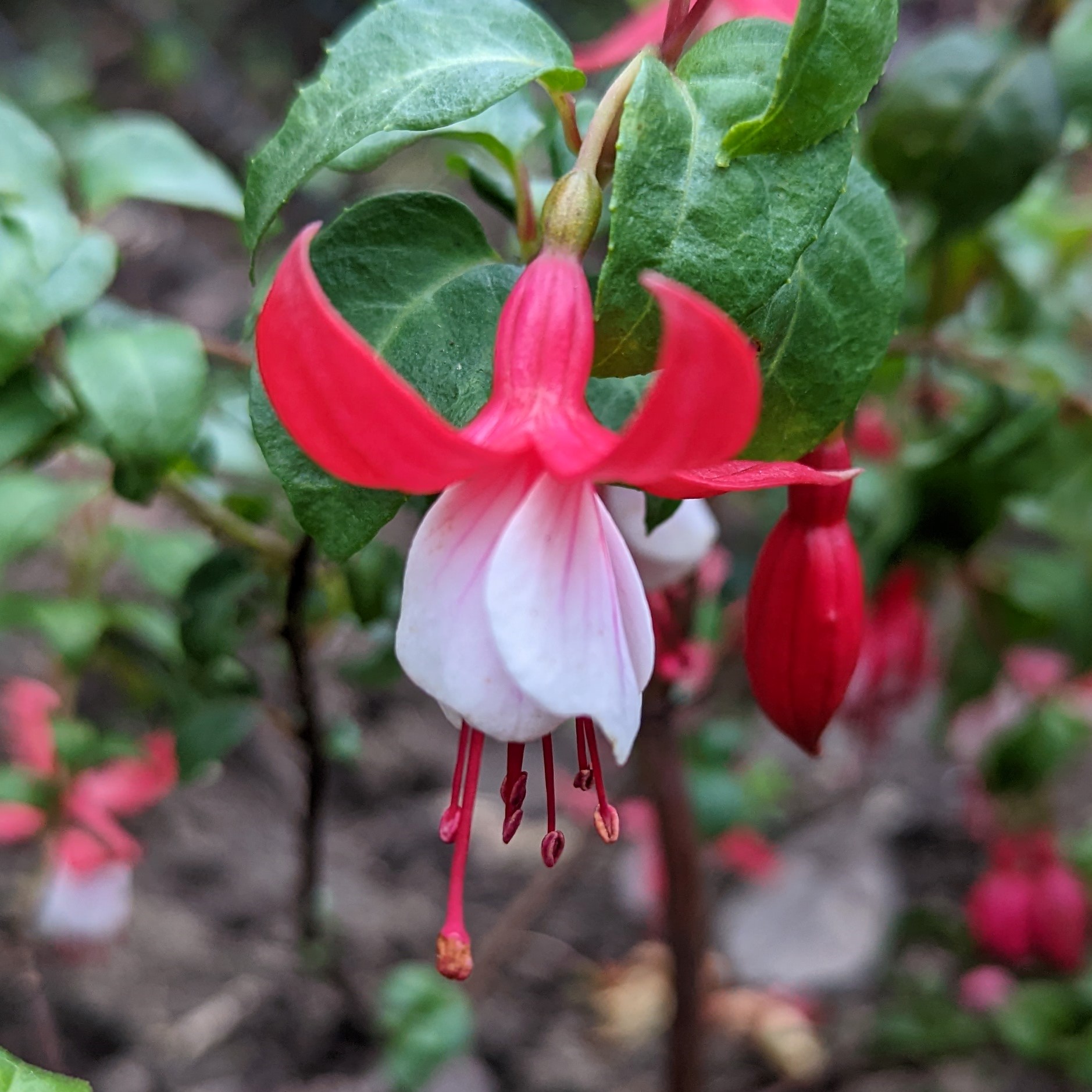 Rot weiß mag einer langweilig finden, für mich ist das der Inbegriff einer Fuchsie. Bei den Winterharten habe ich aber nur die Madame Cornelsen und die hat bei mir dieses Jahr sehr spät mit der Blüte angefangen. Habe leider kein Foto von ihr gemacht