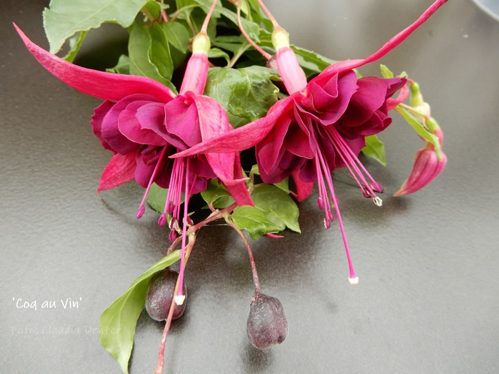 Eine ausdrucksstarke Fuche die jedem gleich ins Auge fällt.Treibt im Frühjahr etwas spät aus man schaut immer ob noch grün im Stängel ist. Auch die Blüte setzt spät ein aber dann gibt es ein überwältiges Bild.Viele große gefüllte Blüten in einem warmen Rotton und die Korolle dunkelblau mit dunkelrot.Ansonsten kann man nur Gutes über diese Fuchsie sagen.