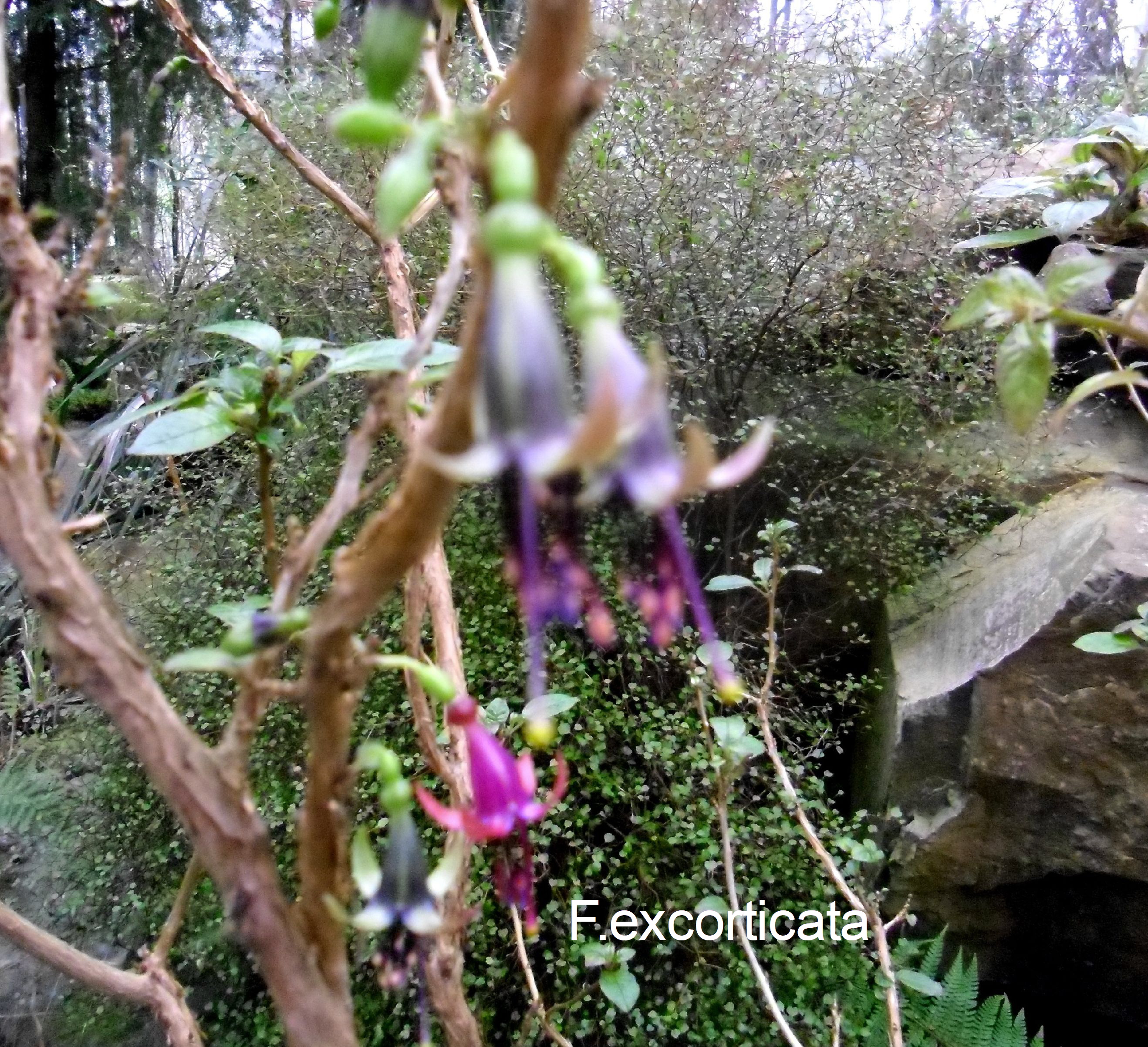 Neben großen Flächen welche mit F.procumbens als Bodendecker bewachsen waren fanden wir eine mannshohe" F.excorticata" zum Teil noch blühend.Eine kleine Sensation. .