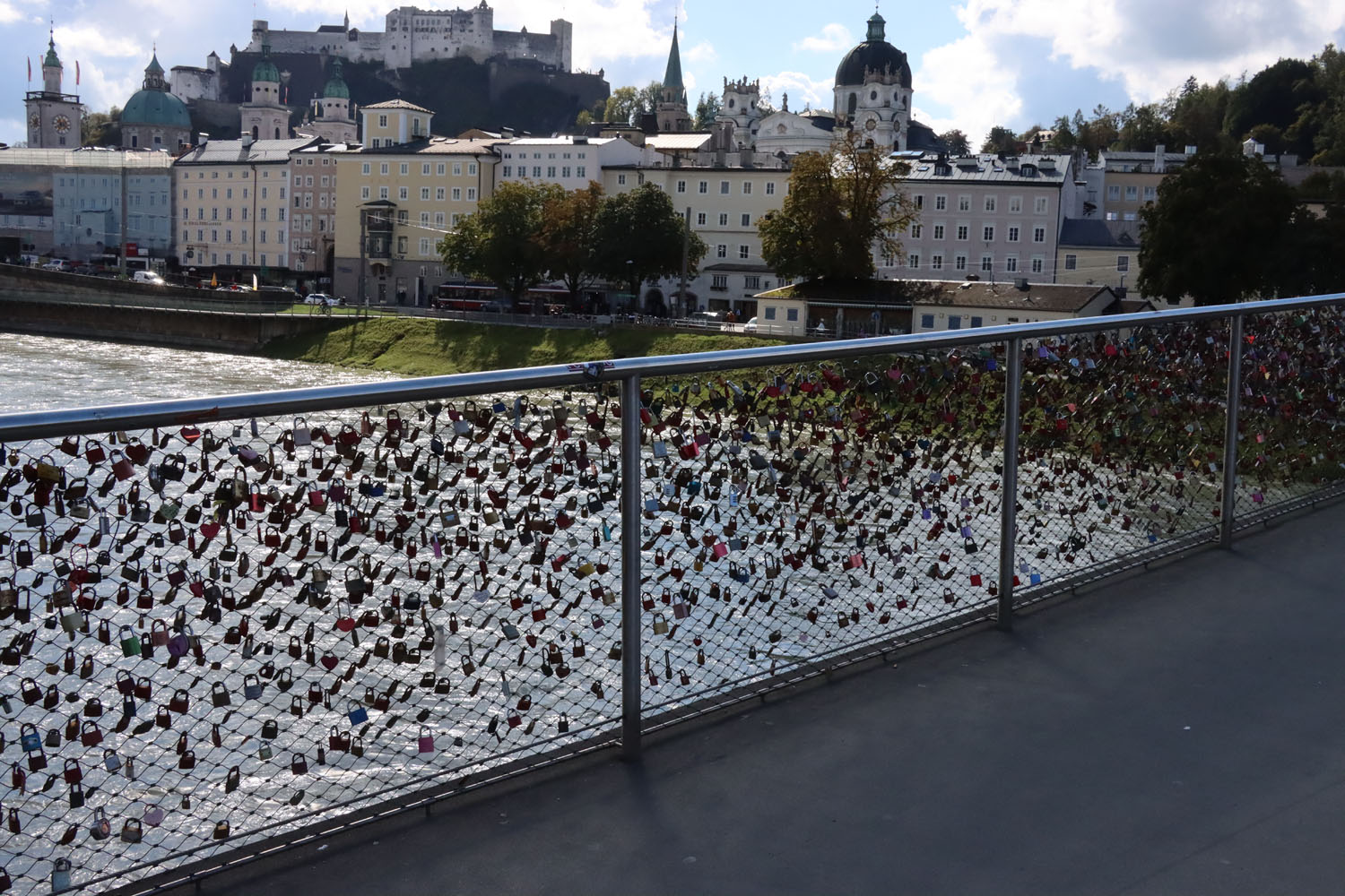 Es gab auch eine Brücke, genau wie in Paris, wo jeder ein Vorhängeschloss aufhängt und den Schlüssel in den Salz wirft.